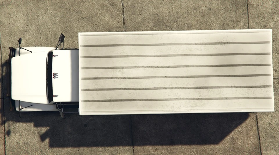 The Benson returns to Grand Theft Auto V and Grand Theft Auto Online, with an almost identical design as GTA IV. The truck is now primarily used as a moving truck as opposed to a bottler truck, and as such, lacks the rear trolley and loading bay, and in their place, a new ramp door is found, hinged from the bottom. The side handles have been moved up to compensate for the larger door, and new marker lights have been added. The front pushbar has also been replaced with a much larger, heavy duty pushbar reused from the Hauler, and the front bumper itself is plastic as opposed to chrome. The grille has also been changed, and no longer features 3D horizontal parts. The passenger-side step marker light has also been removed. The side shutters also lack the original depth they did in GTA IV, and are now flat.