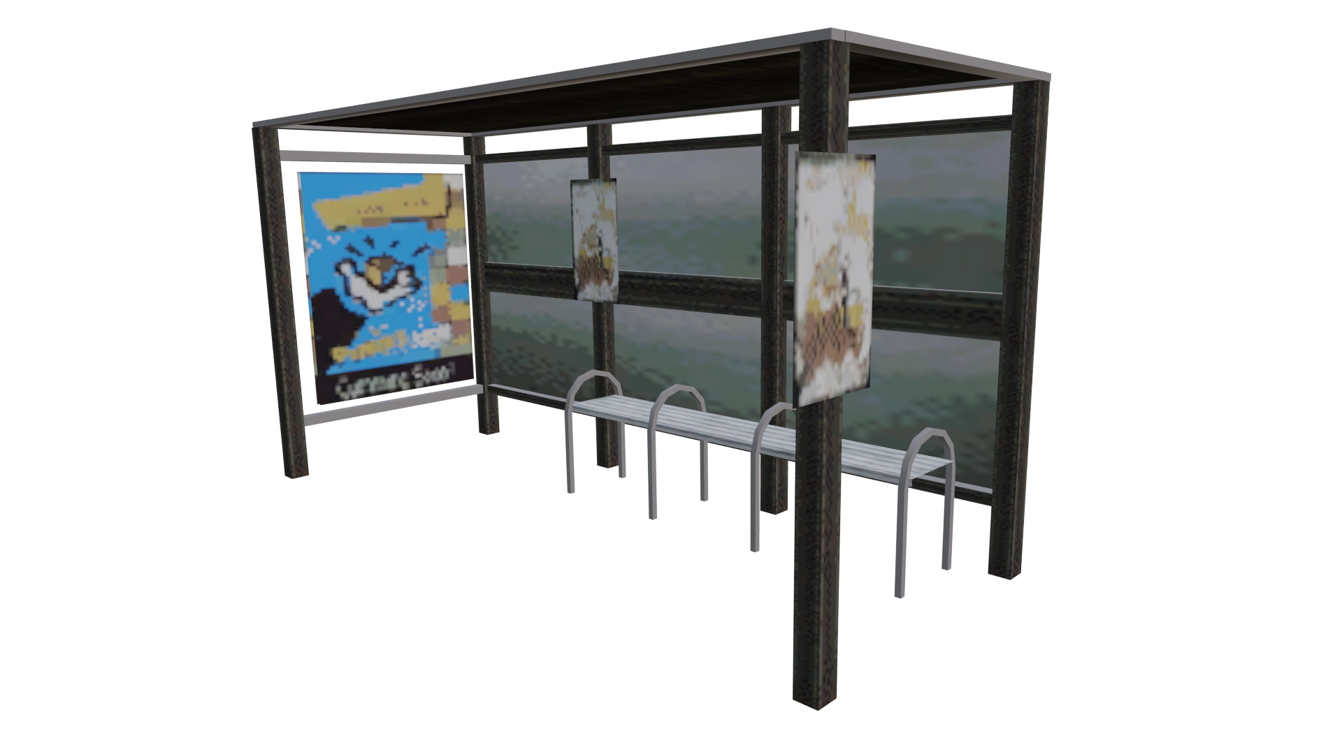 An unused bus shelter model, containing an anachronistic advertisement for Rubik's Cube, taken from the OddzOn Mini-Cube T030-30000-02 User Manual.[1]