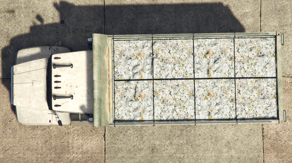 - The rear waste container appears as a separate extra attached to the vehicle model, in the same manner as GTA IV's appearance, meaning that the truck's bed is textured if the container was removed. Despite this, the truck only ever appears with this extra attached.
