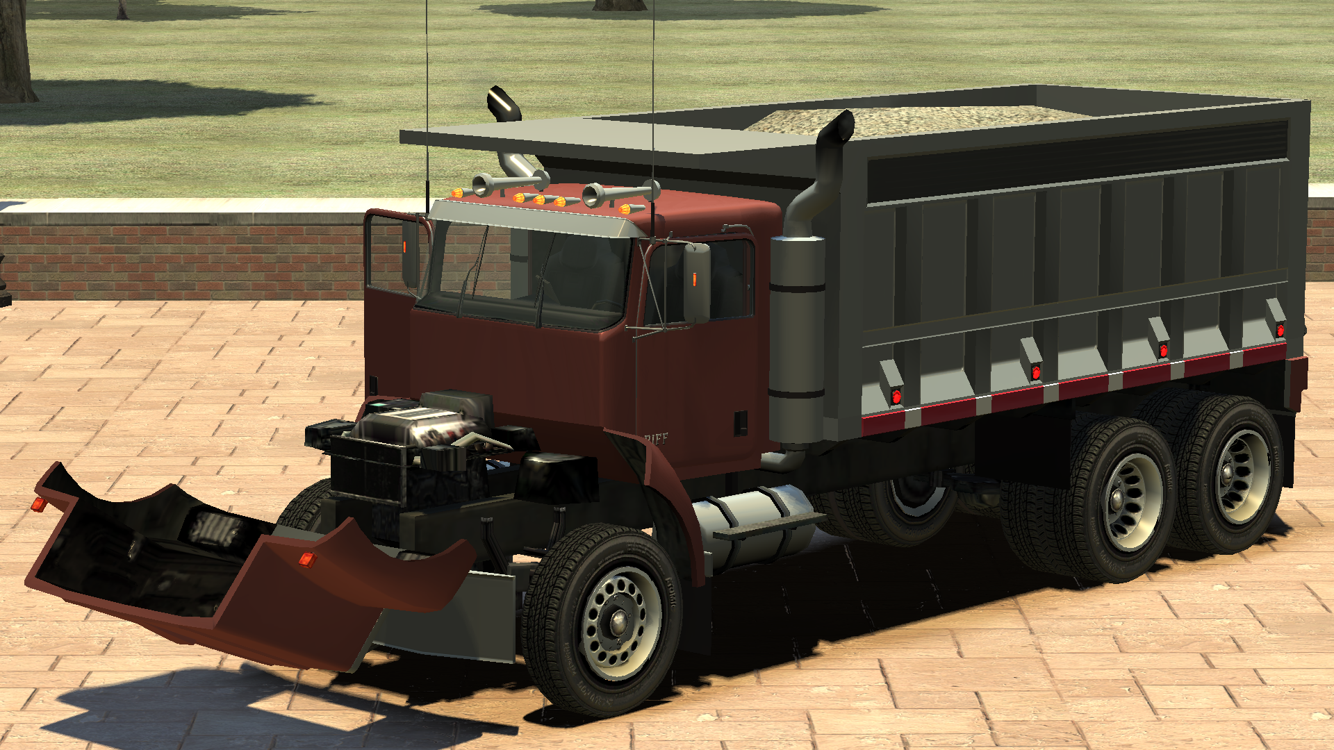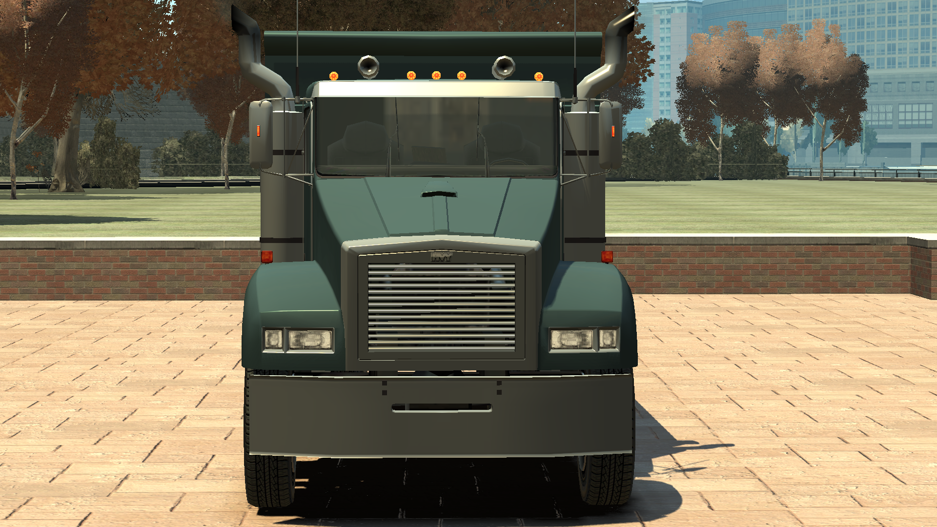 The vehicle can spawn either as a flatbed or as a dump truck always filled with gravel, the latter having two different models: a short painted dump container or a large grey dump container with a dumper overhang, side marker lights and top-hinged rear door. The vehicle is normally set to spawn in a variety of single-tone colors, although it is revealed that the secondary color is applied on the short dump container. It also uses a set of industrial wheels similar to the Mule and the Phantom.
