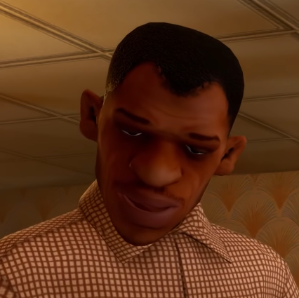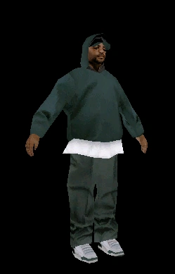 There are three cutscene models for Big Bear, an unused (fat) one csbigbear, the used thin onecsbigbearthin and another unused model called csbigbear2[2]. The third model is overweight and seen wearing gray pants and a black cap under a dark green hood. This model is a recolored version of the Grove Street Families Fam1 model.