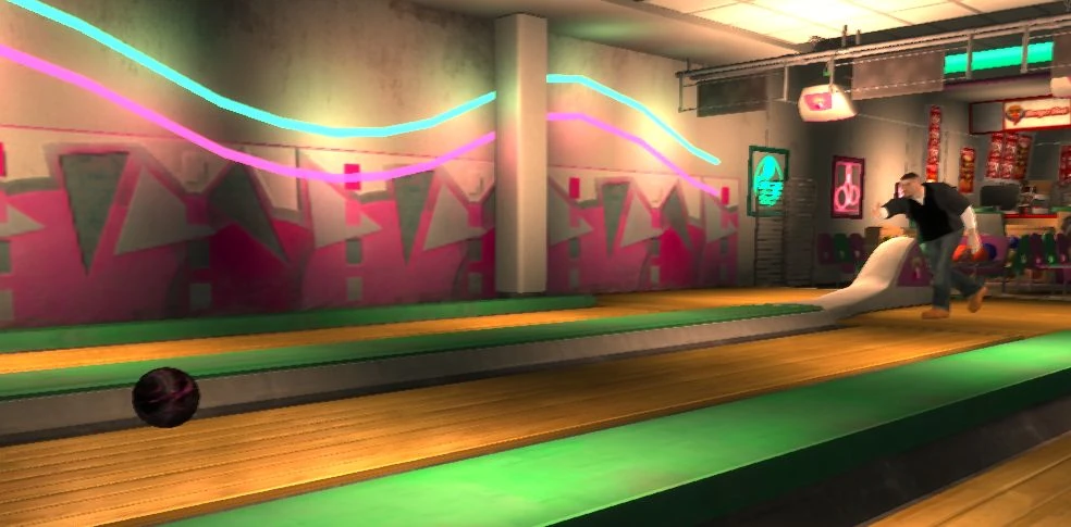 It can be played at two bowling alleys owned by Memory Lanes. Bowling is introduced to the player during the mission First Date but the player can bowl anytime while not on a mission before that. The player gets a choice of playing a half game or a full game. A win in bowling is required for 100% completion. The achievement Gobble Gobble is given if the player scores a "turkey" (three strikes in a row). Non-playable characters can be seen bowling in the bowling alleys. The player can still bowl in The Lost and Damned and The Ballad of Gay Tony, but it is no longer available as a friend activity, seemingly replaced by Air Hockey.