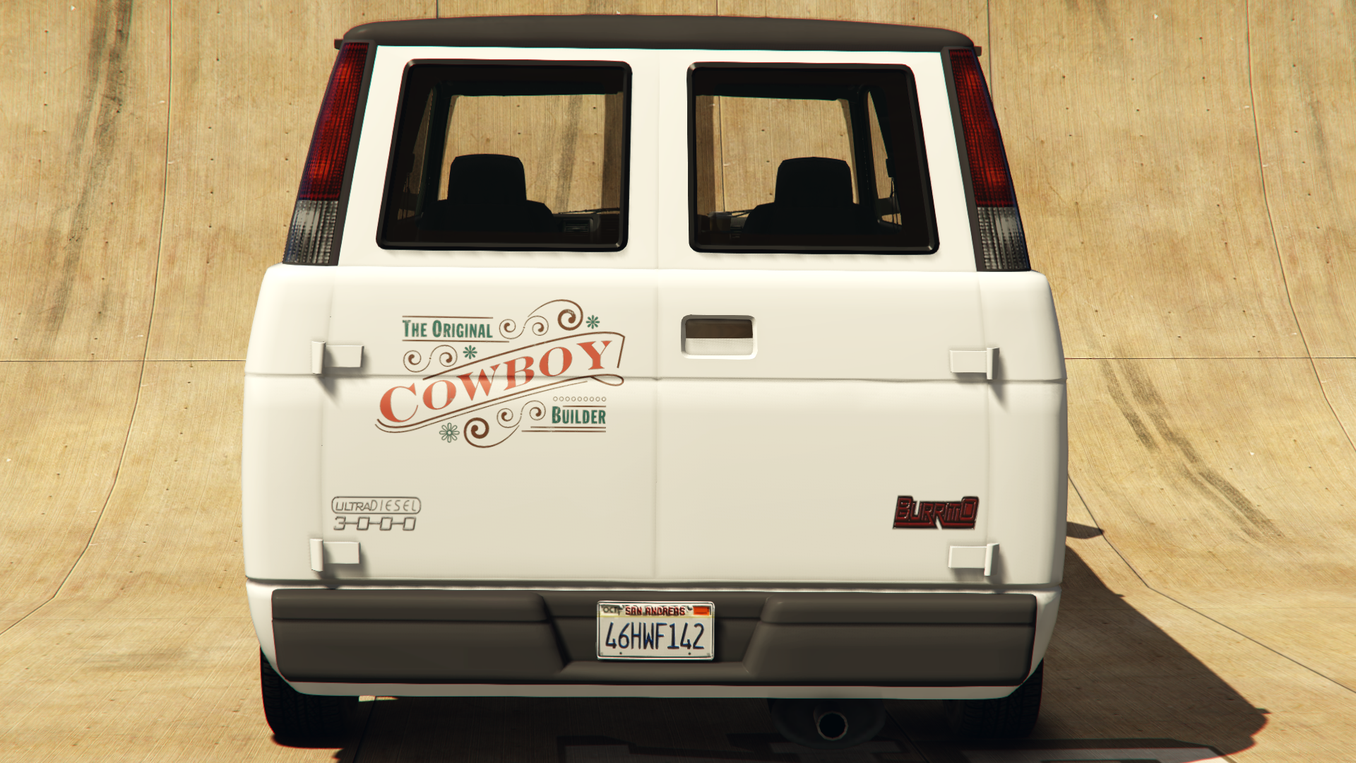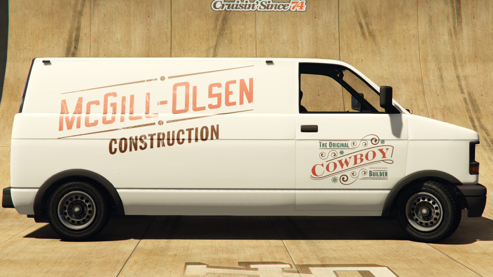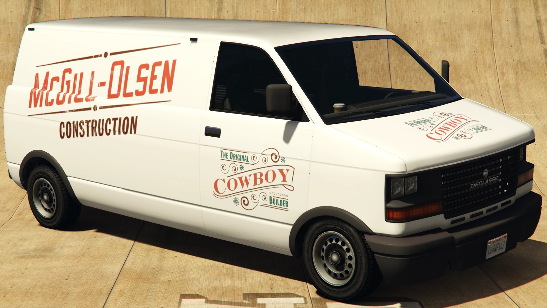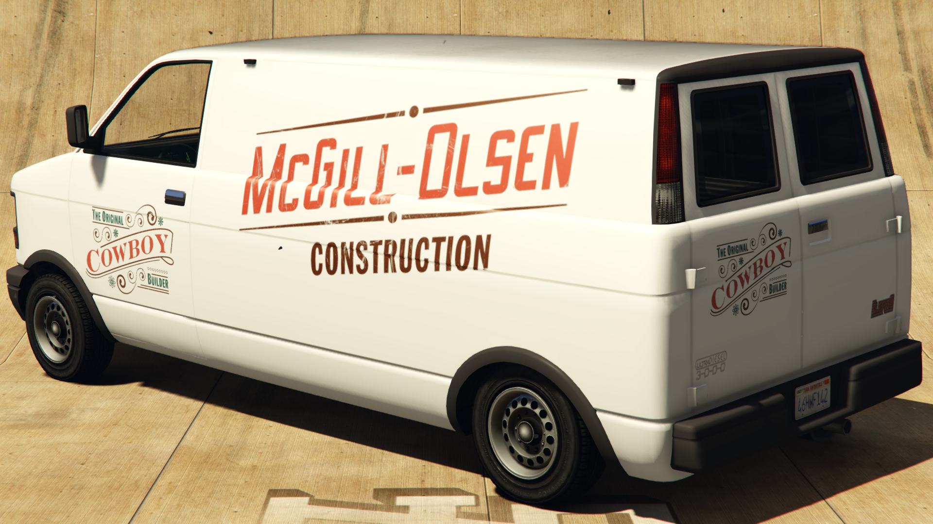 The van is a variant of the second generation Burrito, but with a McGill-Olsen Construction livery. It appears in an all-white body color and, in comparison to the first generation Burrito, which may also appear with a McGill-Olsen livery, lacks any interior or roof equipment. The livery also has additional decals on the cab doors, not present on the first generation equivalent.
