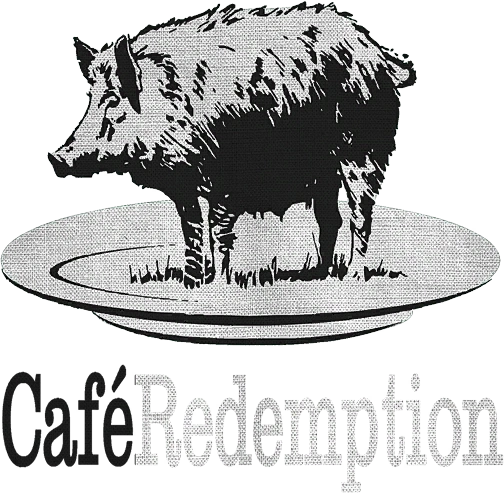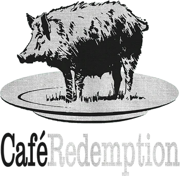 Its name and logo design, a wild boar on a plate, is a reference to Rockstar's game Red Dead Redemption. The green color scheme and logo positioning is reminiscent of some Starbucks outlets. It is possibly a parody of the real-life Boar's Head Cafe in Chicago, Illinois.