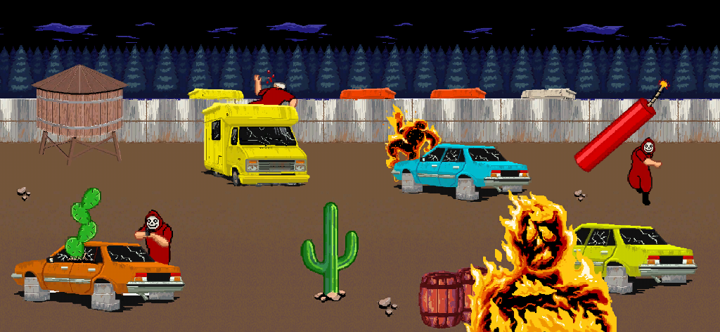 The minigame is featured as part of the Los Santos Tuners update, as a light gun shooting gallery. The game is an in-universe ROM hack of Badlands Revenge II, and its main artwork being a vandalised version of Badlands Revenge II artwork featuring Manhunt characters, and its gameplay is almost copied from the said game, with all characters, scenarios and weapons being replaced by the ones from Manhunt.