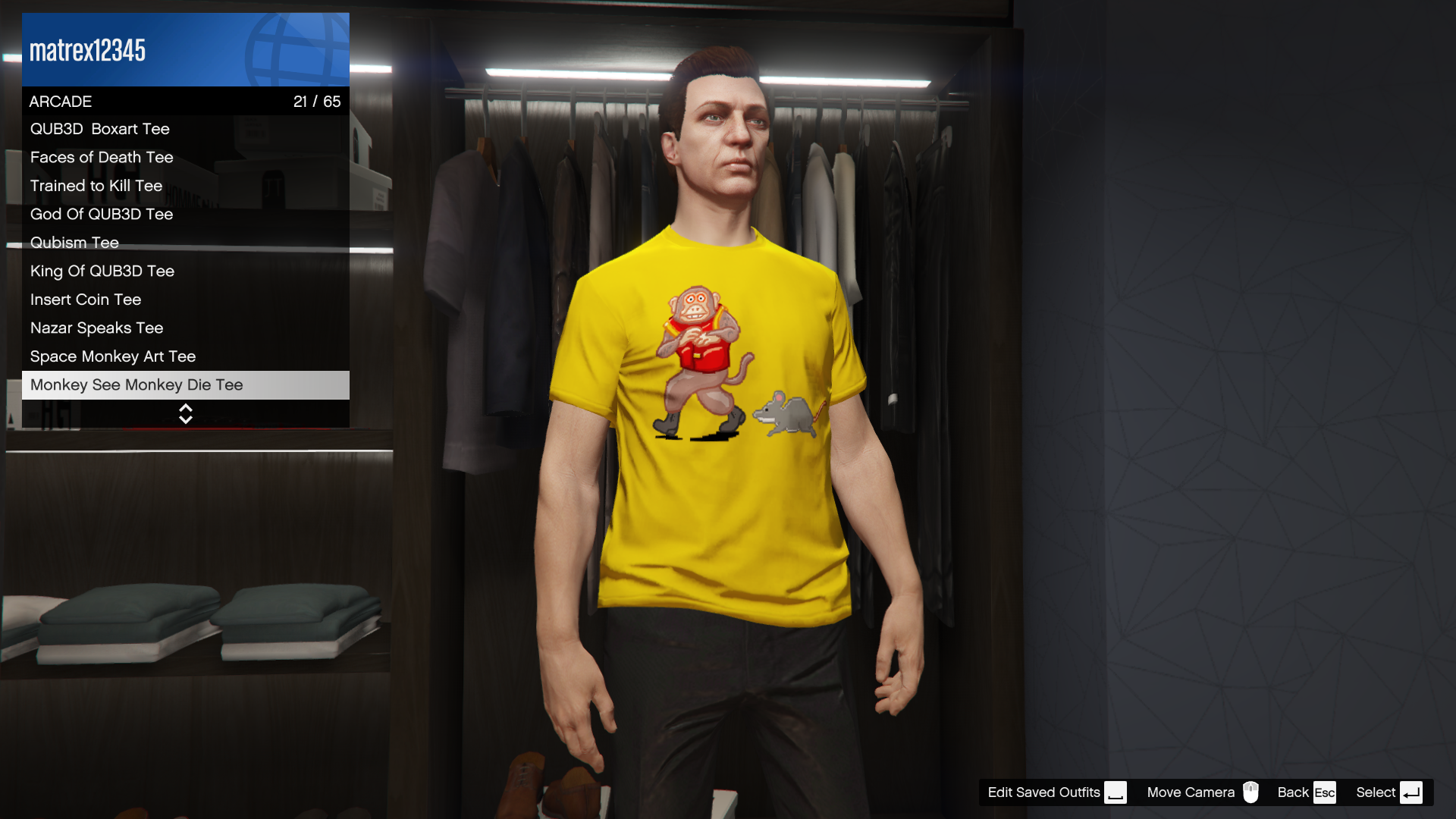 | Monkey See Monkey Do | Kill all costumed weirdos across all scenes in Camhedz. | Monkey See Monkey Die Tee |