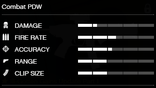 - The Combat PDW lacks a rear sight on all platforms, similarly to the Advanced Rifle which lacks the front sight on the Seventh Generation (PS3/Xbox 360) version.