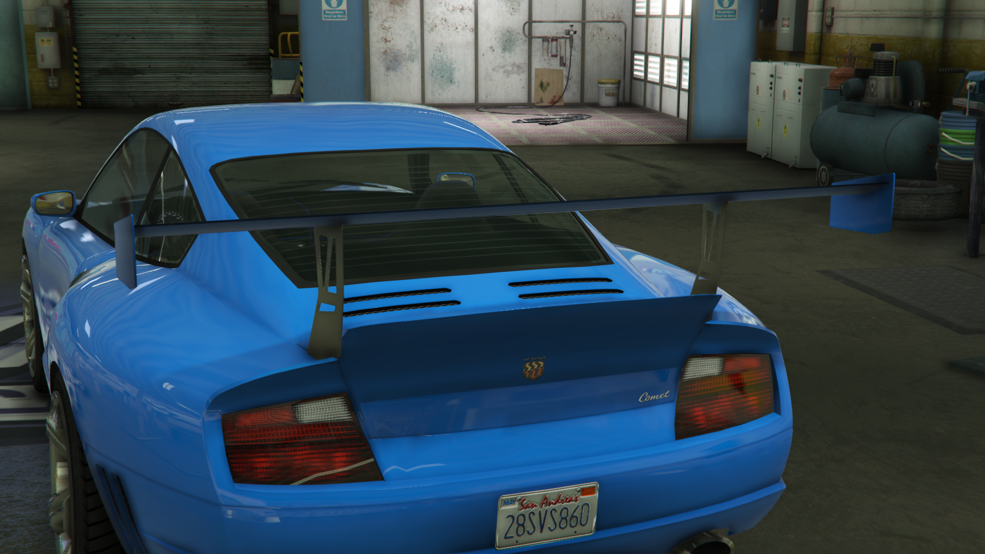 In Grand Theft Auto V and Grand Theft Auto Online, the Comet retains the same model as in GTA IV, but features an updated design, consisting of vented skirts, rear fender ducts and a standard rear deck spoiler with small scoops, giving it resemblance to the Porsche 996 GT2. It also features a rear license plate.