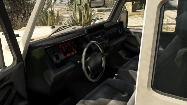 Its interior and dials are identical to the Cavalcade set found on the Mesa and many other SUVs. According to the files, the Crusader uses its own set known as "Cavalcade Army", despite it being identical, hinting towards beta changes.