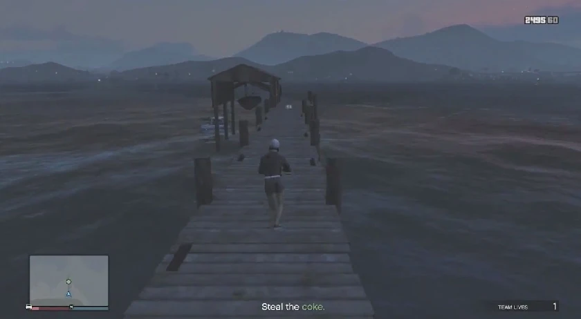 The team has to steal coke from a rival gang at the pier on the north shore of the Alamo Sea. The coke will be guarded by around 15 men and two enemy boats. When the coke has been recovered, four more enemy cars come in to kill the team. The team has to deliver the coke to Trevor's trailer to complete the job.