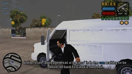 Toni catches up to Casa and kills him with a Fire Axe, butchering him. Meanwhile, two LCPDpatrol cars drive near the gates of the sawmill. Toni gets into a Pony, loses the cops and heads back to the deli to deliver Casa's remains to a clerk.