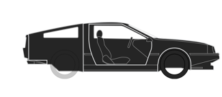The primary color of the car is applied to the bodywork, while the secondary color is applied to the upper portions of the front and rear ends. A trim color is also available for the interior. It uses a set of wire rims resembling the ones from the DeLorean DMC-12, with the rear wheels being larger.