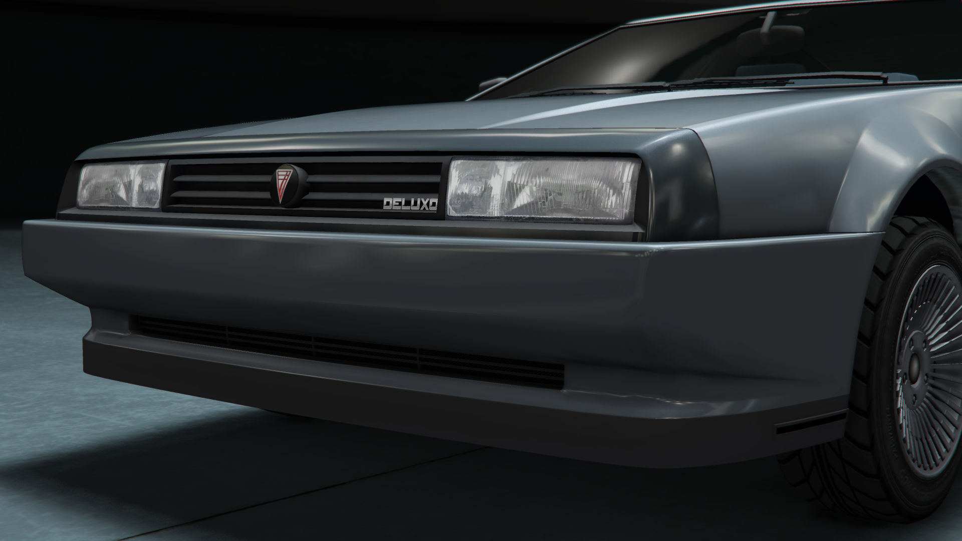 The Deluxo returns with a design much closer to the DeLorean DMC-12, but having slight styling modifications similar to the Lancia Montecarlo. The wedge shape of the front is similar to the first generation Isuzu Piazza, while the styling of the front fascia is derived from the 1987-88 Pontiac 6000 and the rear end features tail lights similar to those of the Nissan 300ZX (Z31). The vehicle gains the ability to fly, making it similar to its fictional iteration from the Back to the Future series, the DeLorean time machine, though lacking the characteristic devices on the rear.