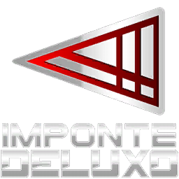 The rear of the car features a black panel with the license plate in the center and silver "IMPONTE" and "DELUXO" lettering, as well as a set of tail lights separated into main/brake unit on the upper side and turning/reverse units on the lower side. The rear bumper is mostly flat and has small vents on the lower portion, together with the central muffler and two exhaust pipes below the bumper.