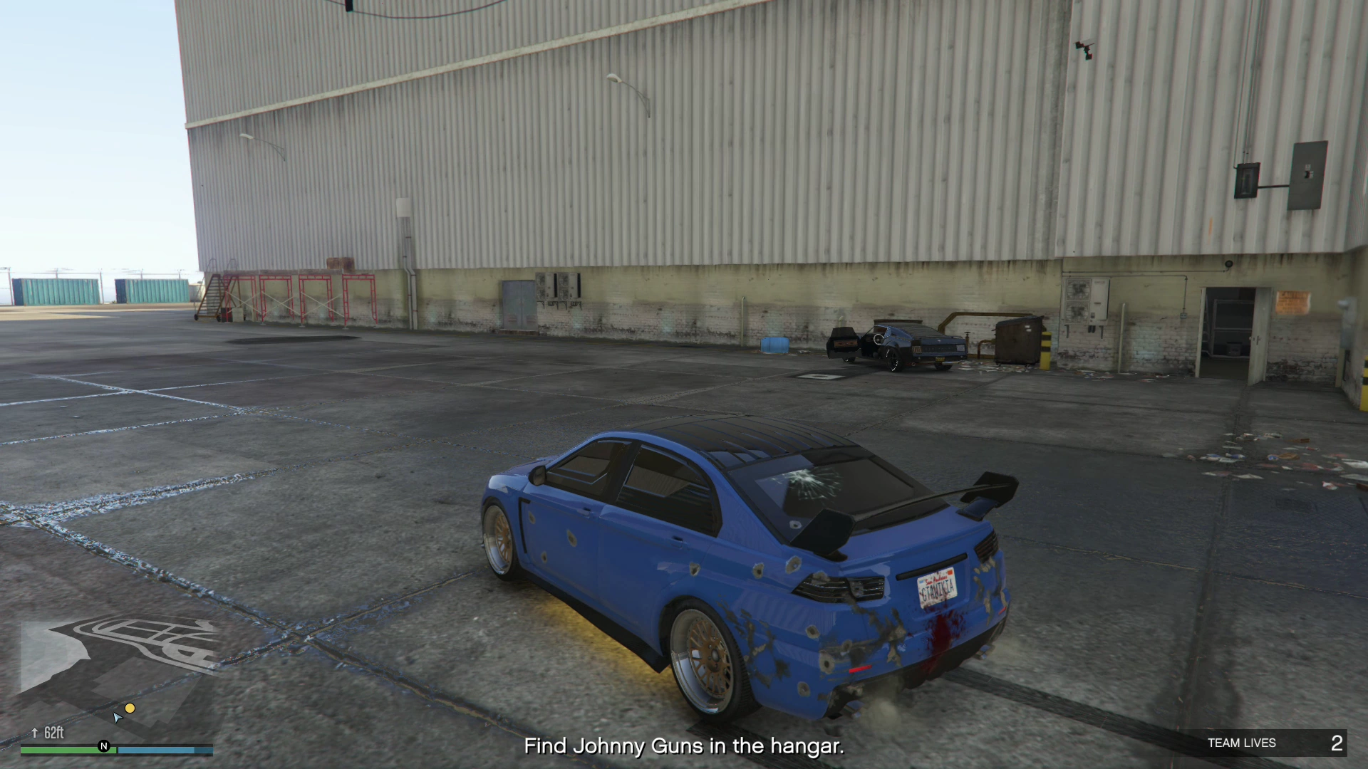 | As the Protagonist approaches the Devin Weston hangar at the airport... |