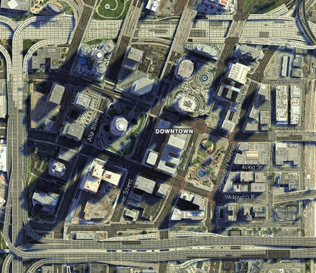 Satellite view of Downtown Los Santos.