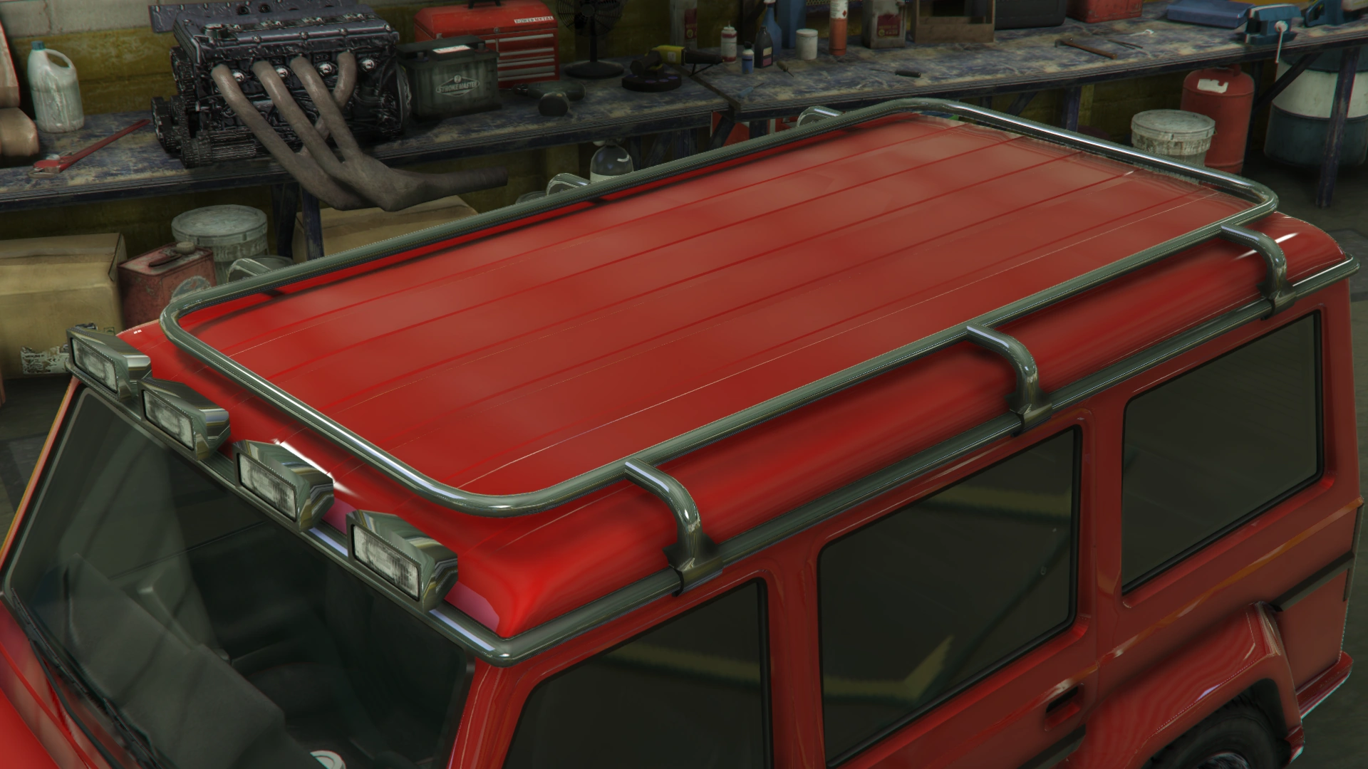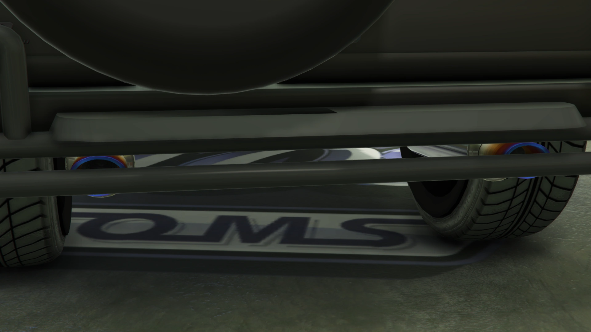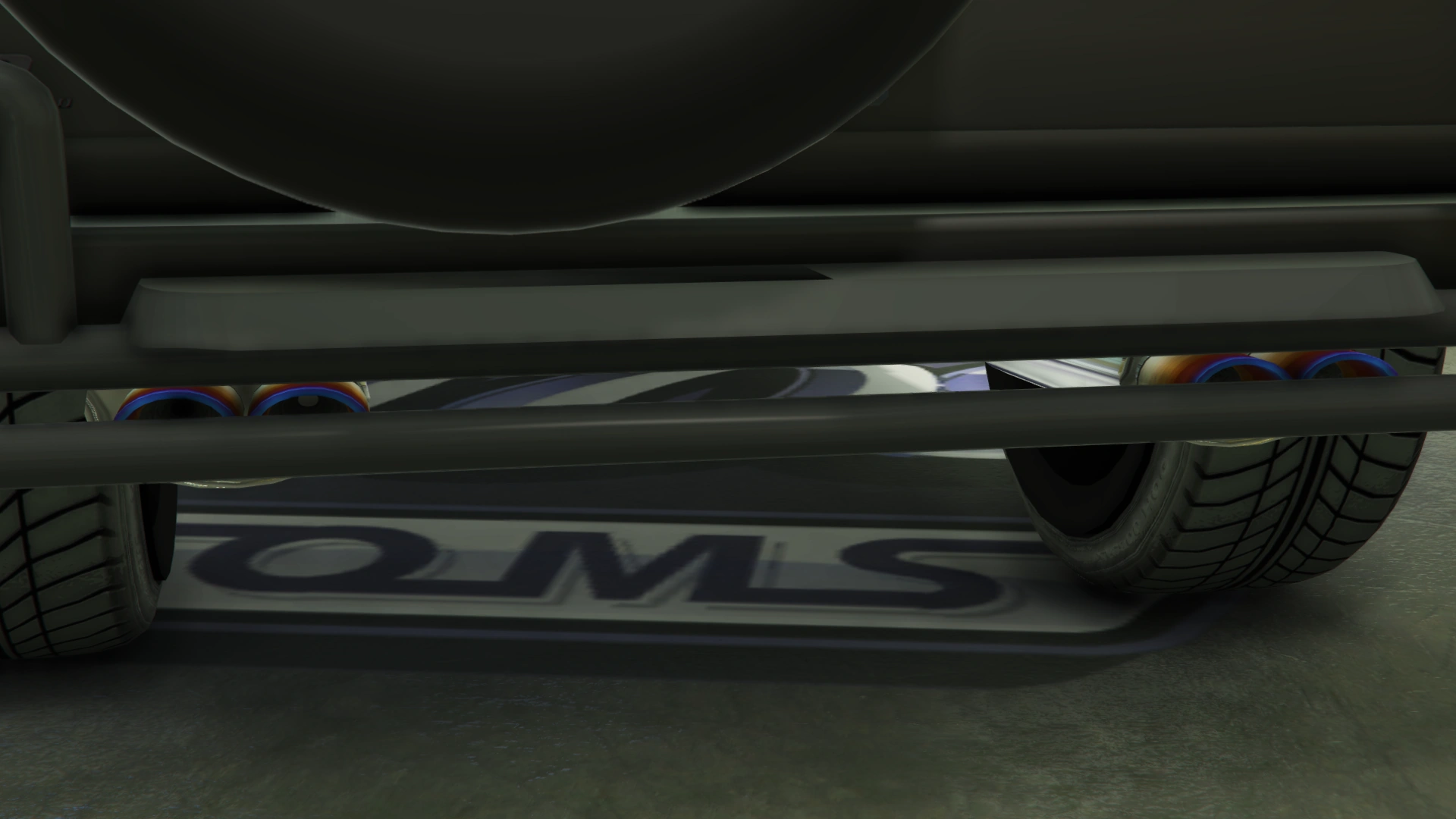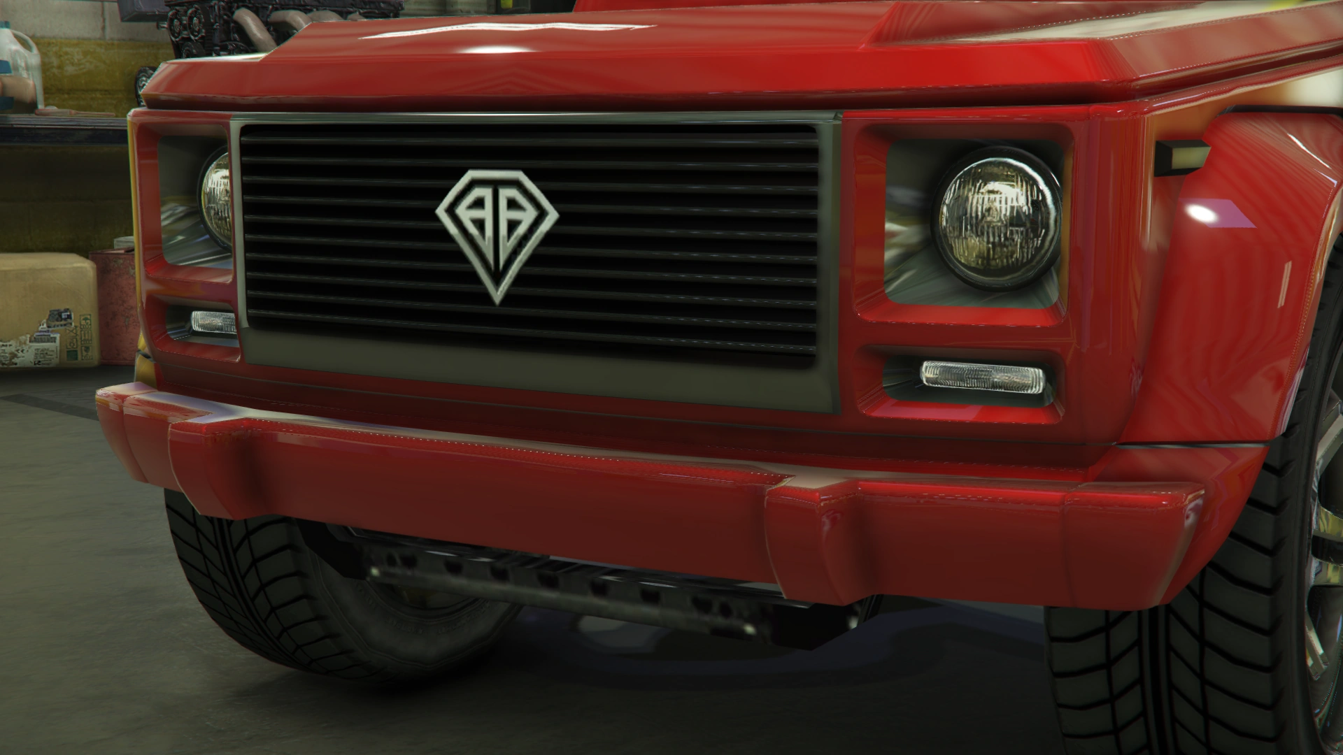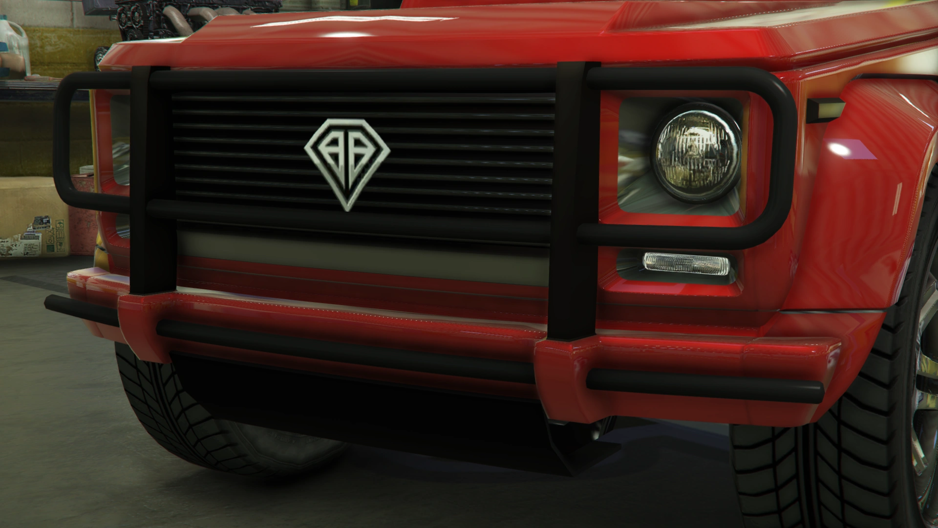 There is a modified version of the Dubsta which features the same design as the regular Dubsta, but all of the trim and chrome details have been blacked-out and also features more shallow roof indentations. The vehicle is set to spawn with various extras that are also available as modifications for the normal Dubsta, being a Black Bullbar, Black Rear Guard, Black Grille, Spare Tire and Black Side Steps. The car also has an unknown window tint applied by default.[2] The design details of this variant seem to be inspired by the Mercedes-Benz G Class models modified by the aftermarket tuning company Brabus.