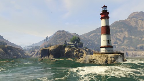 - A stunt jump takes place in the area around the lighthouse. The player is required to jump off a cliff located on the mainland, over the water, and land perfectly on the base of the lighthouse platform to successfully complete the stunt jump. Since there is no way back to the mainland without entering the water, any vehicle used for this will be lost, unless the player switches to another character and waits long enough for the character that performed the jump to respawn in another part of the map.