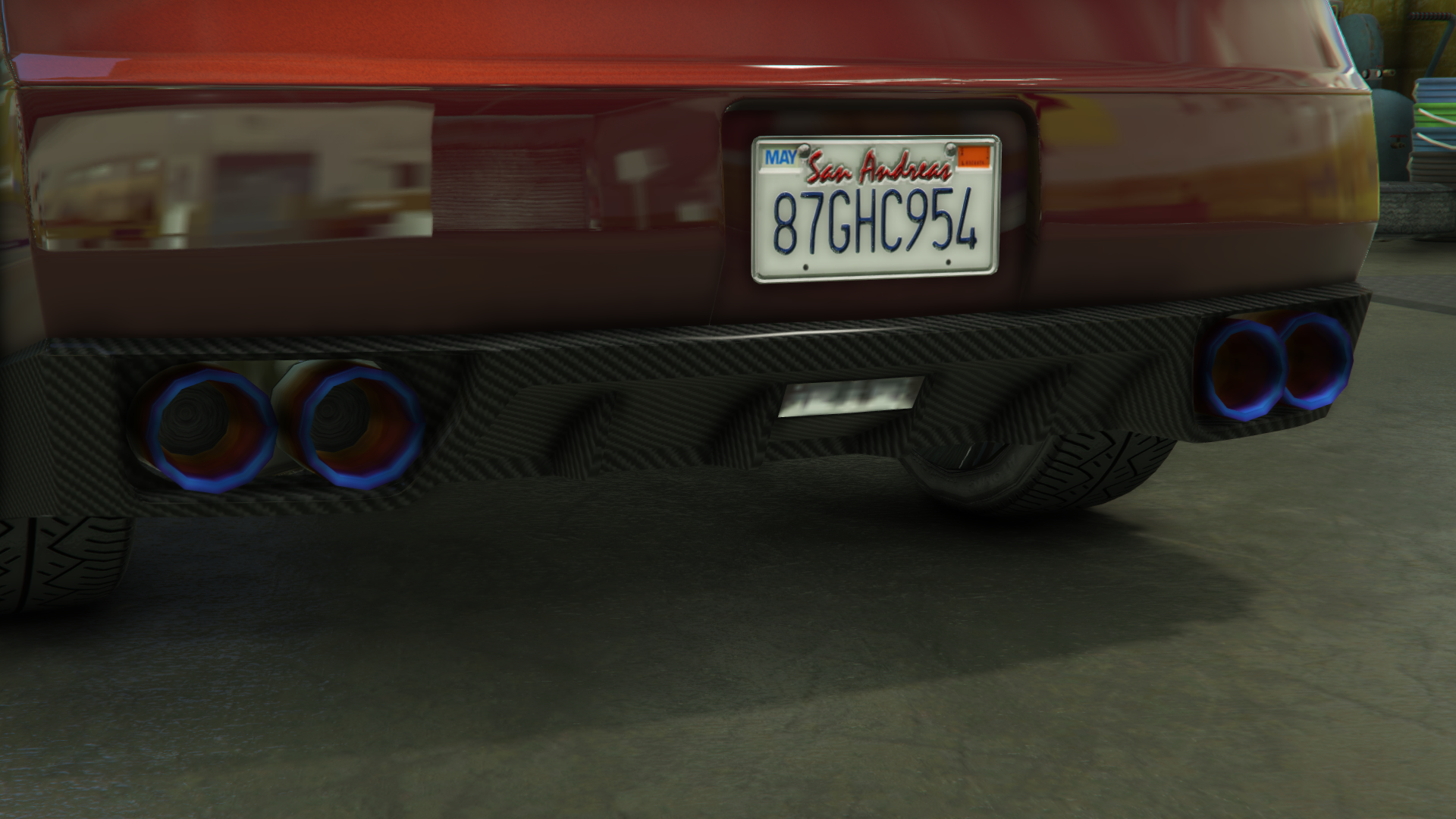 - While the spoiler found on the car by default is treated as stock, Los Santos Customs lists the option as "None", meaning the spoiler cannot be removed, despite the stock spoiler being called "None".