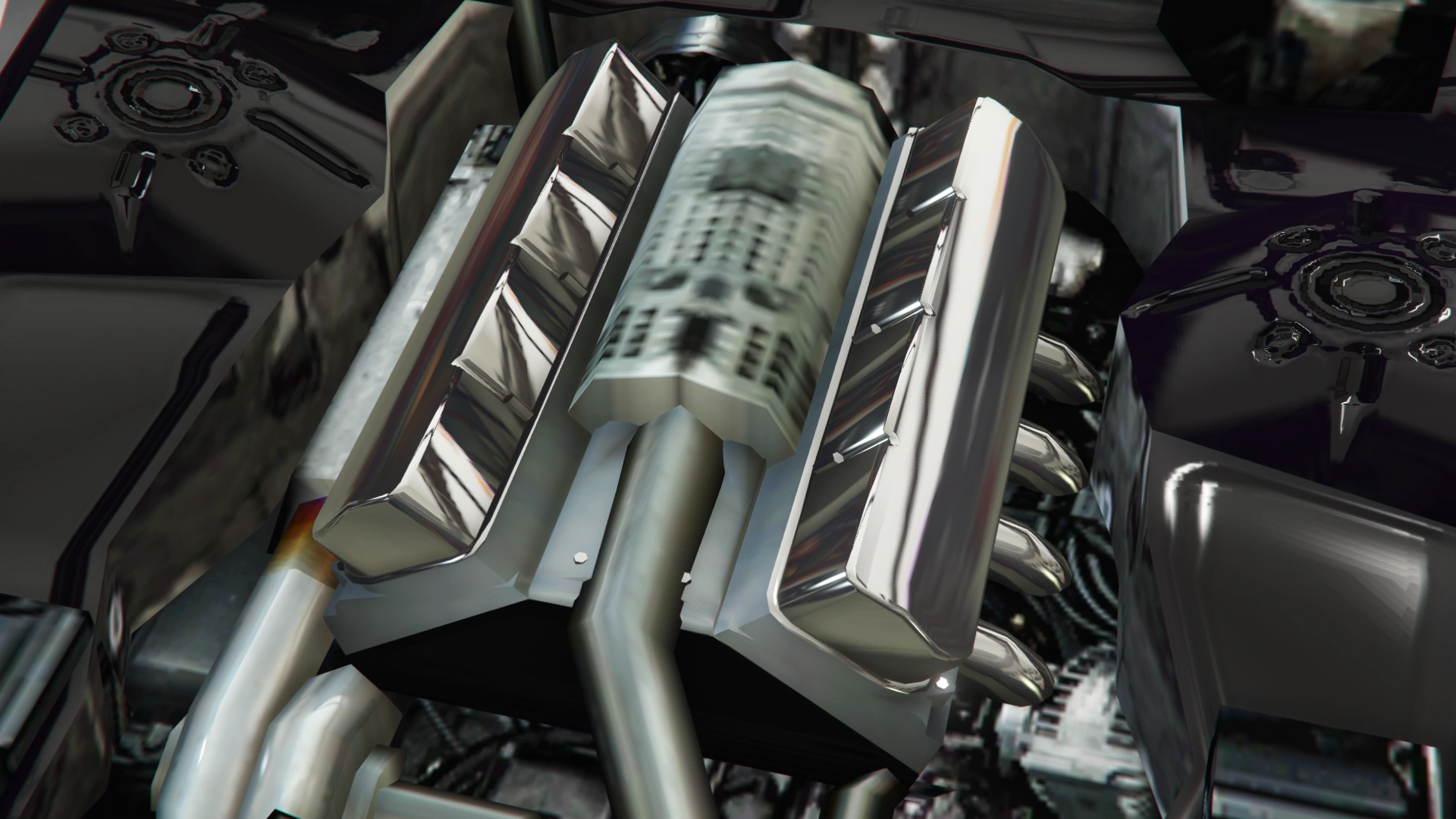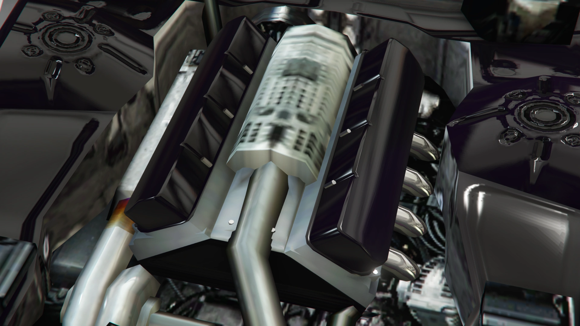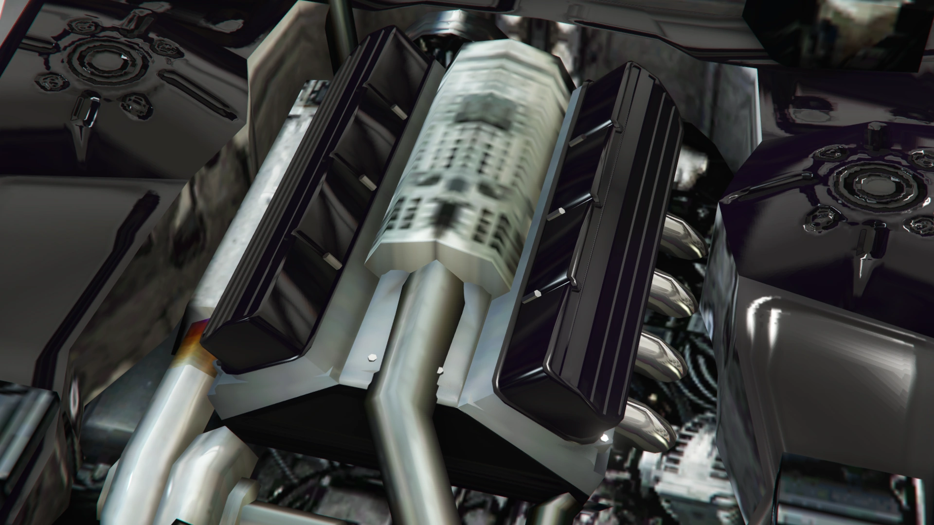 The engine is shared with the original Faction by default, being a single-cam V8 with a turbocharger by default. There also appears to be a supercharger-like modification centralised on the engine block, with the supercharger intake pipe coming from the radiator and front-grille area. The engine sound is shared with the Marshall and Liberator, being a high-power, high-output V8.