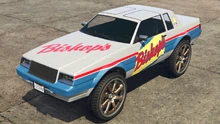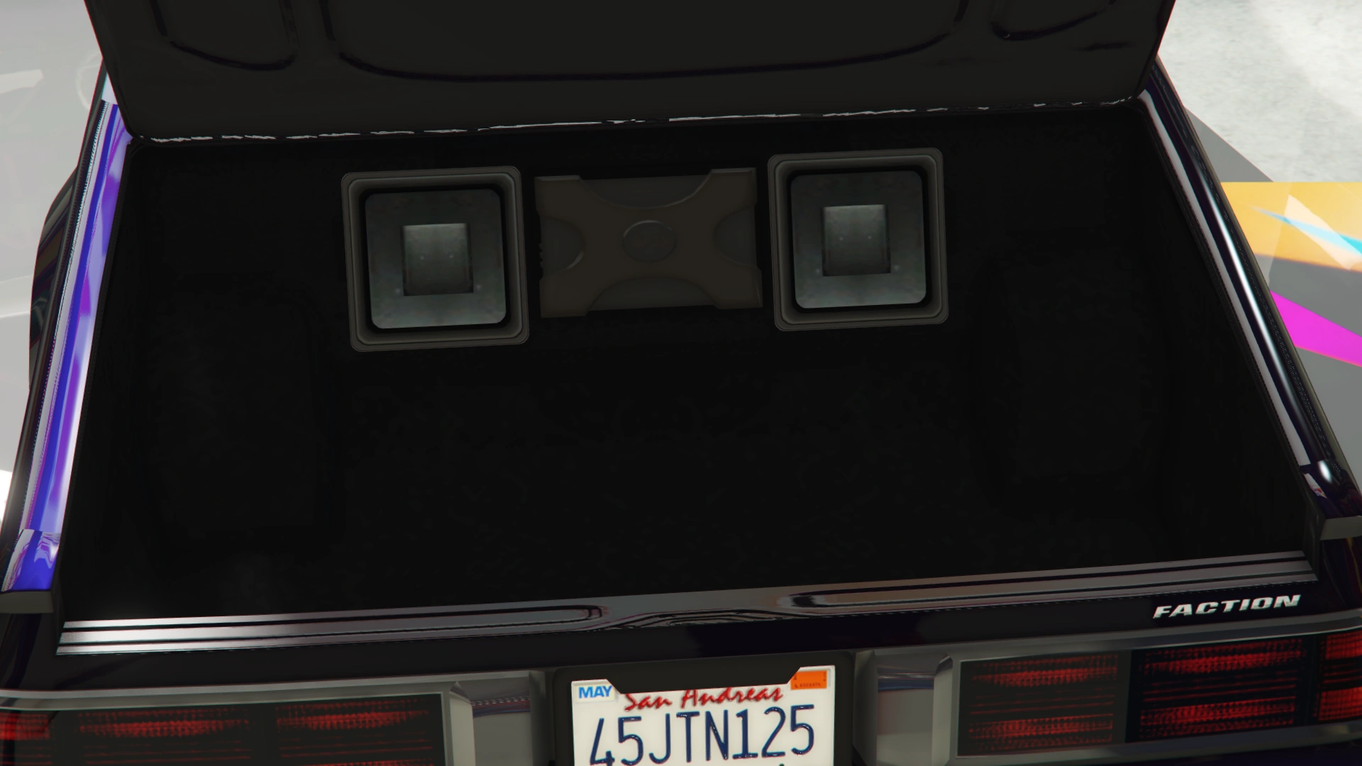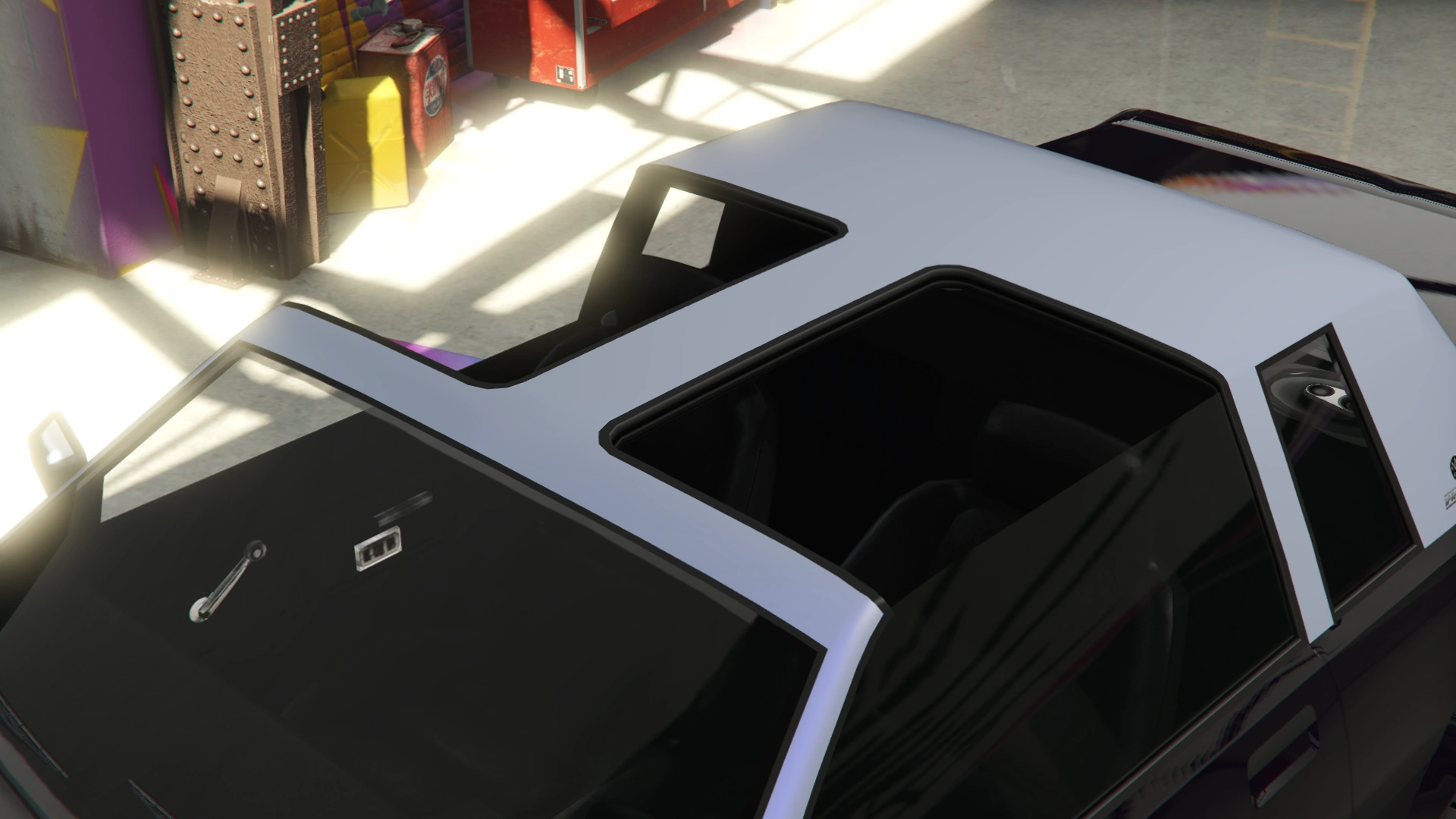 Again, the vehicle may spawn with the solid T-top, a glass T-top or no panels, which can be changed at Benny's Original Motor Works. Color distribution is largely the same as the Faction Custom, but the central cross frames are painted in secondary. The vehicle also gets custom "LozSpeed Baller" hi-rider wheels.