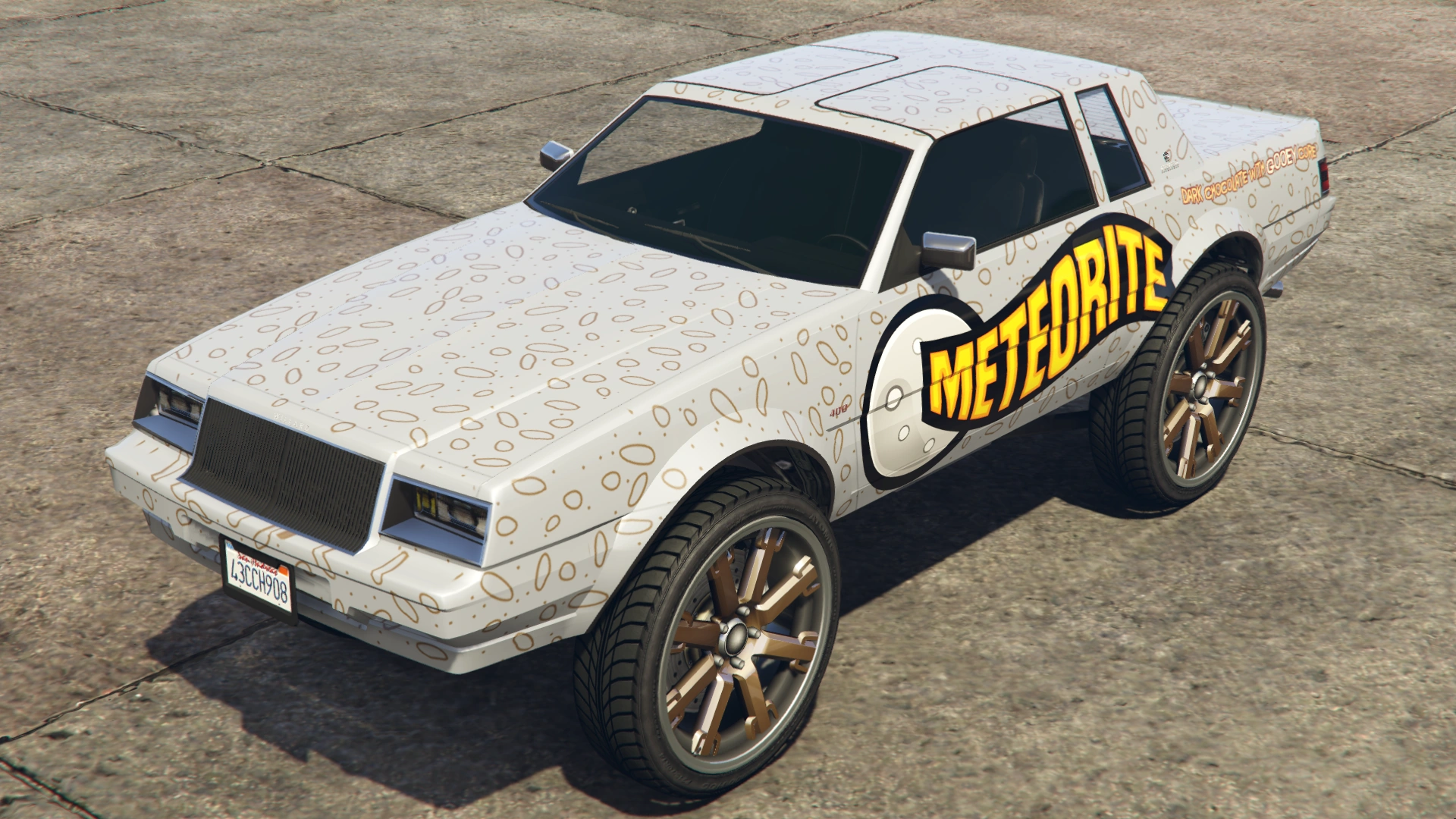 - The "Sprunk" livery available is a reference to the custom Sprite livery applied to a Chevy Monte Carlo SS hi-rider on 30 inch rims.