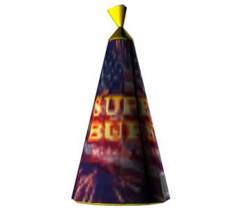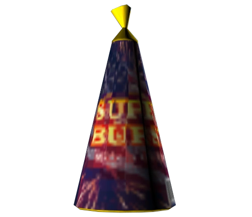 Fireworks consist of small cones that contains various firework powders. It can be placed on the ground where it will then launch various bursts into the air. Each firework has different burst settings that the player can buy in three patriotic-themed colors.
