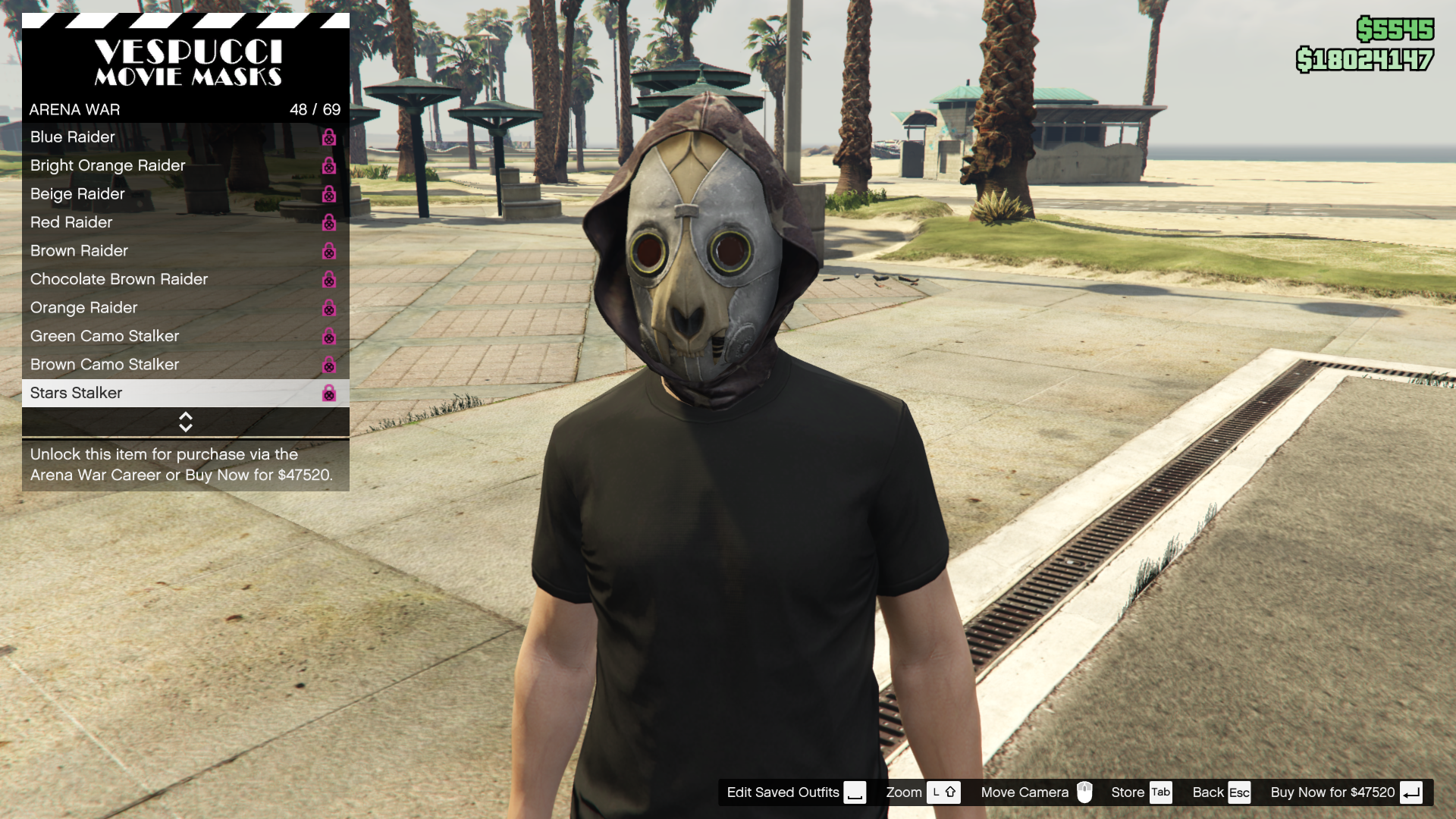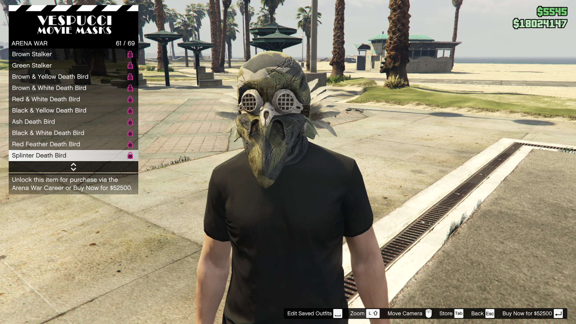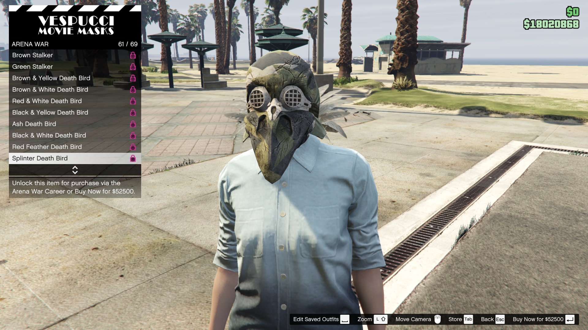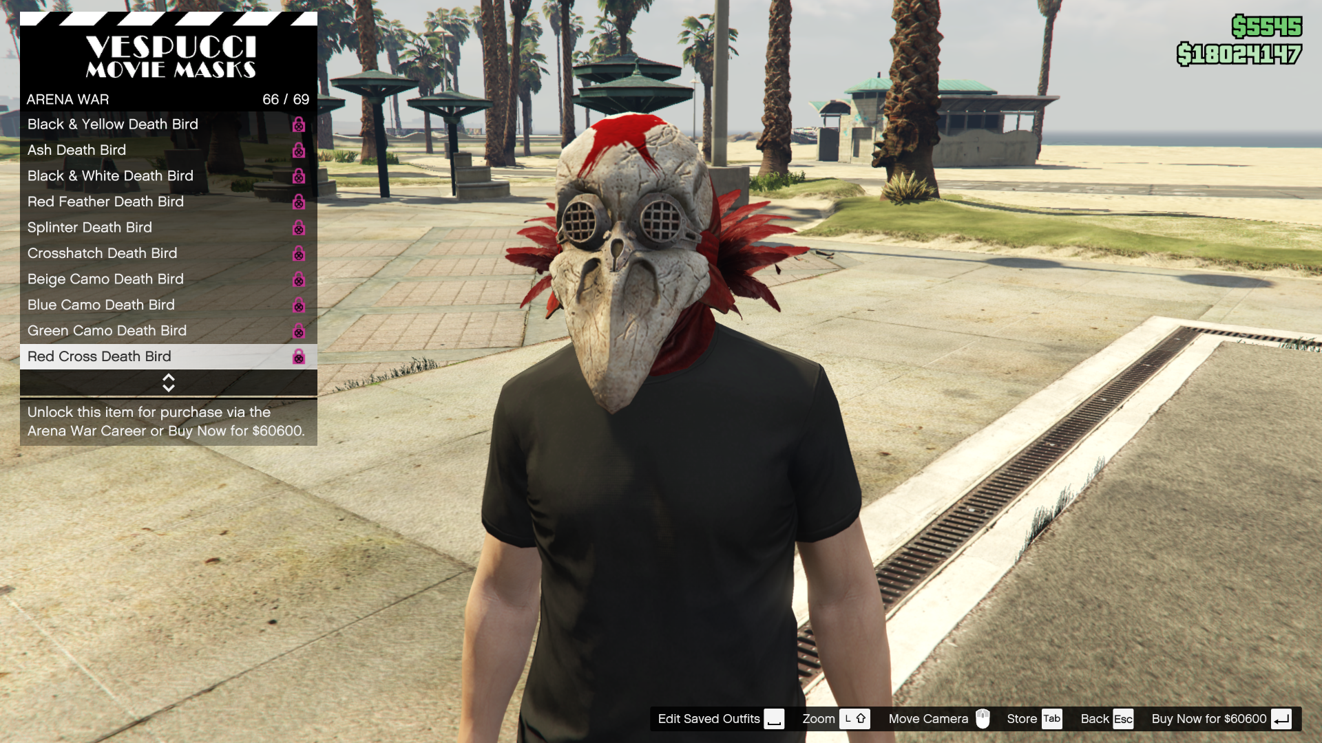 While all clothing items are available to be purchased immediately, levelling up in the Arena War career has a chance of "unlocking" various items, such as clothing and masks. The unlocks are random and will give a 50% discount to the random clothing items "unlocked" with that level-up. Listed below are the non-discounted prices.