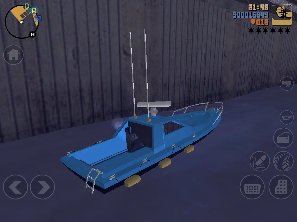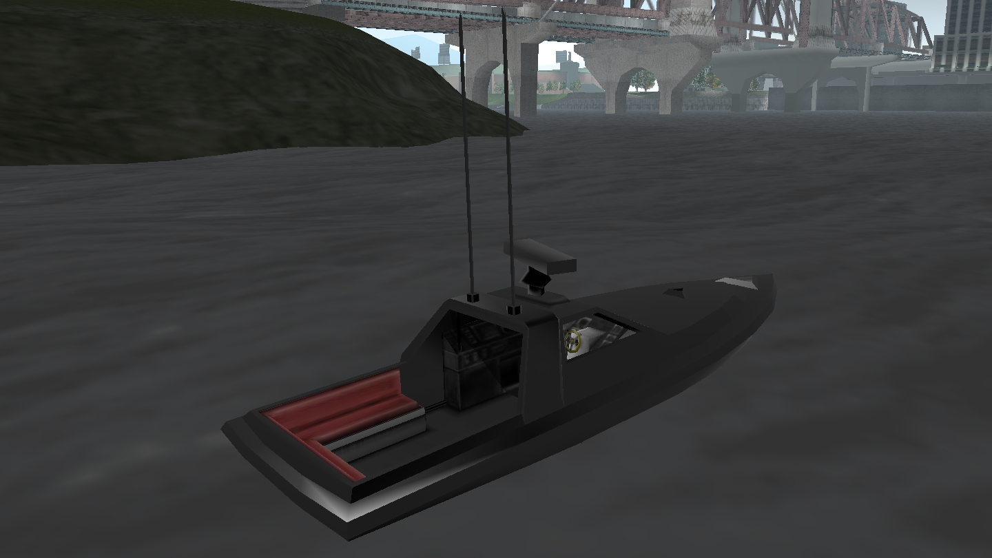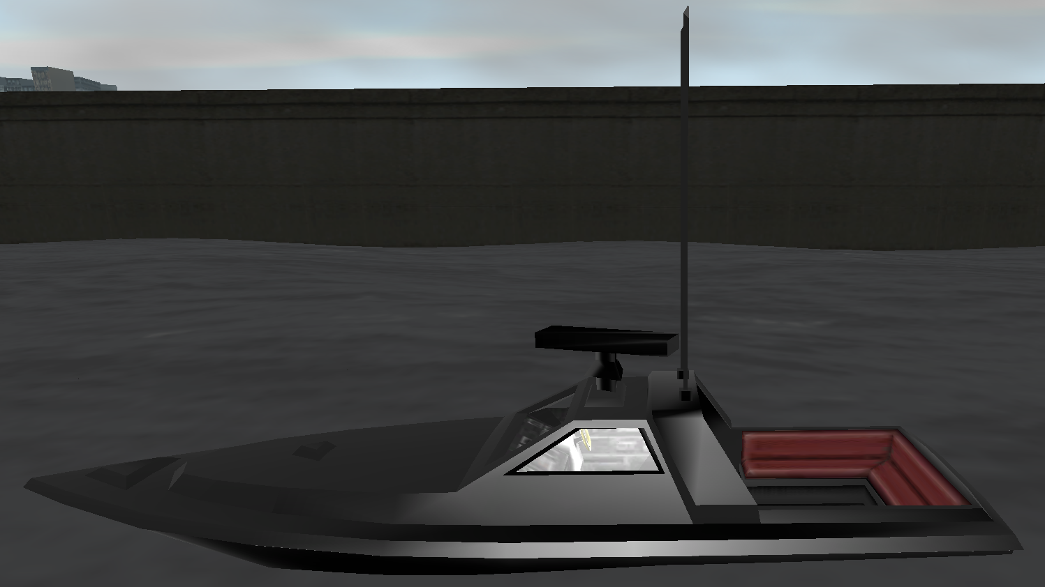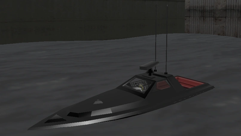 The Ghost in GTA III is essentially an unmarked, modified, civilian variant of the Predator police boat, lacking the twin machine guns of the police variant. The color of the boat is "police car blue" in the PS2, Xbox, mobile and The Definitive Edition versions, and black in the original PC version. The Ghost boat shares many similarities with the Predator. The mobile version of the Ghost also features a bow rail, a small ladder on the back, and buoys attached to the sides.