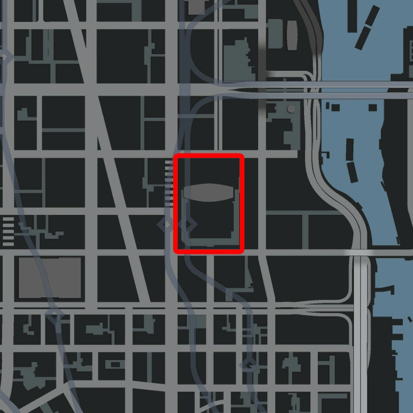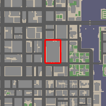 Grand Easton Terminal is a squat yet ornate building in Easton, Algonquin, with its distinctive 3 large glass windows facing Hematite Street and Columbus Avenue, with Bismarck Avenue leading to its frontal facade. Although its origin, Grand Central Station, features a spectacularly decorative central lobby, Grand Easton Terminal's concourse cannot be entered in game. The GetaLife Building looks over the Grand Easton Terminal, built roughly half way into the foundations of the structure as its faces look north and south over Bismarck Avenue. Around the terminal, not very far off the ground is a peripheral walkway for pedestrians, sporting benches, lamp posts and news stands.