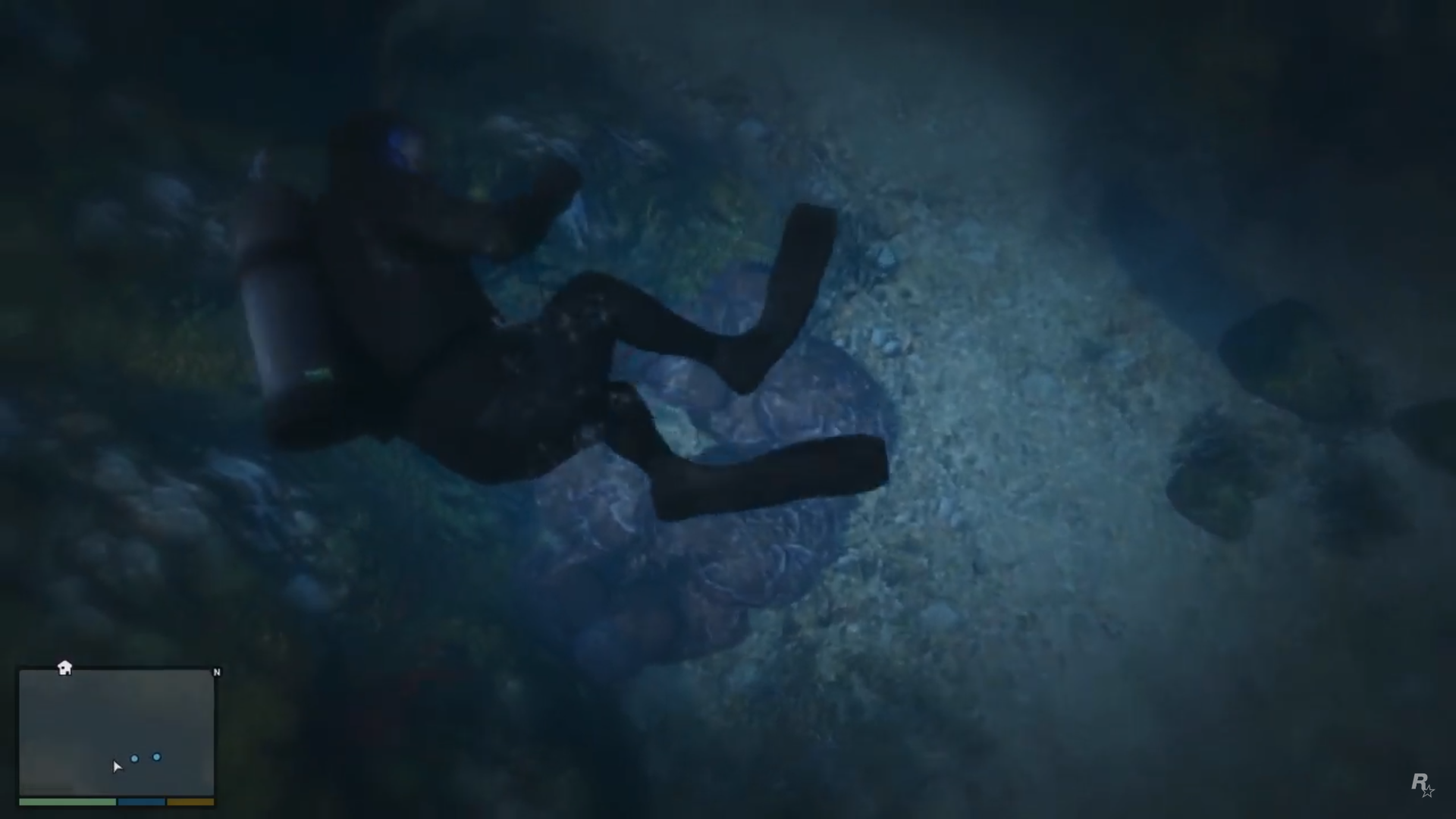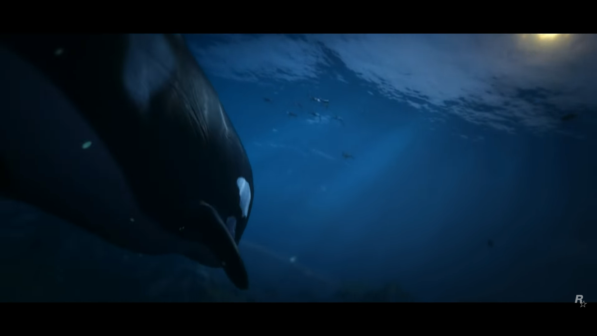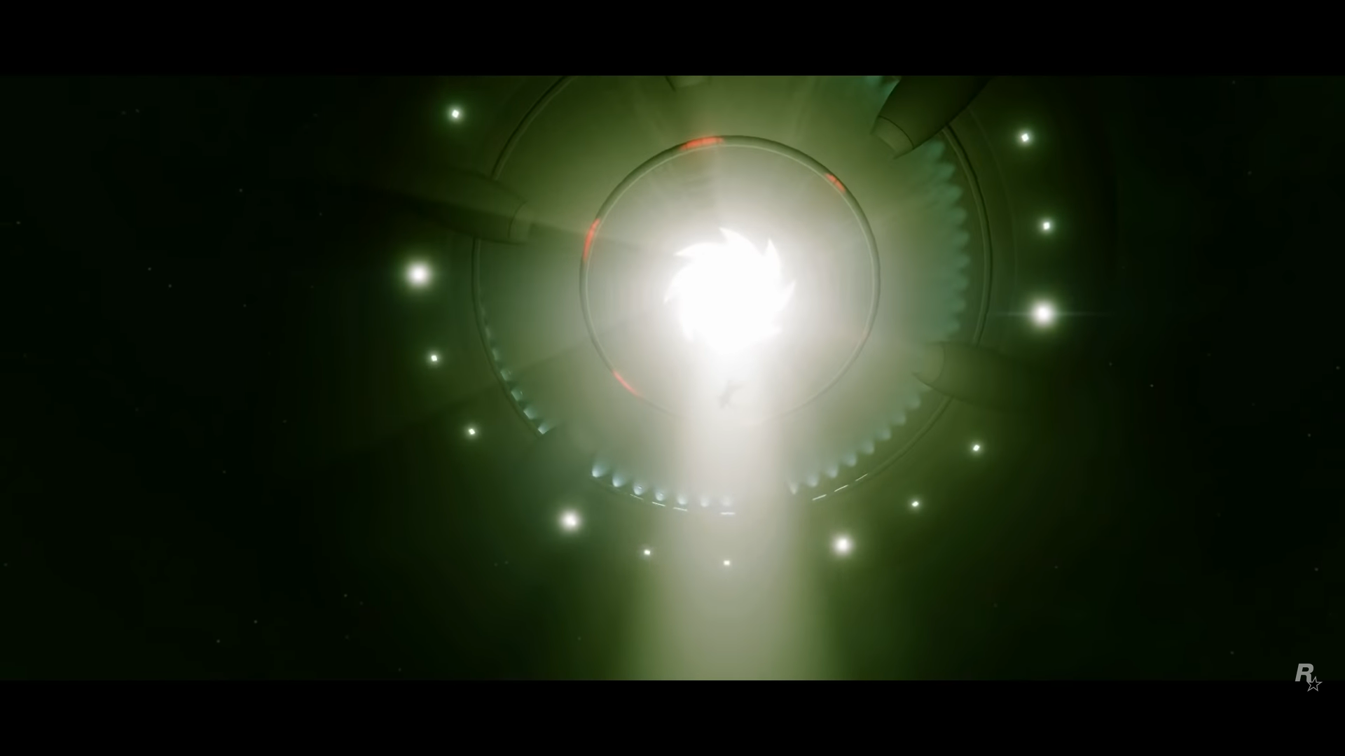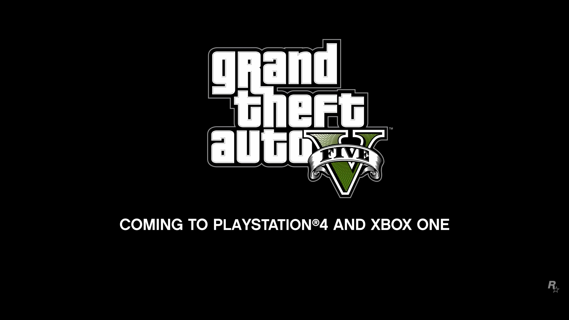 The screen blacks out saying "Grand Theft Auto V, Coming to Playstation 4 and Xbox One November 18." Then a black & white Rockstar Games logo is shown before the video ends.
