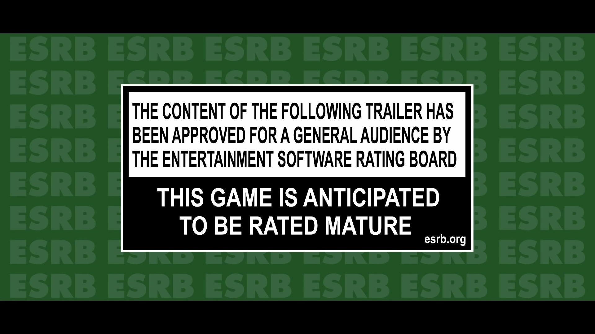 The ESRB screen is shown. THIS GAME IS ANTICIPATED TO BE RATED MATURE.