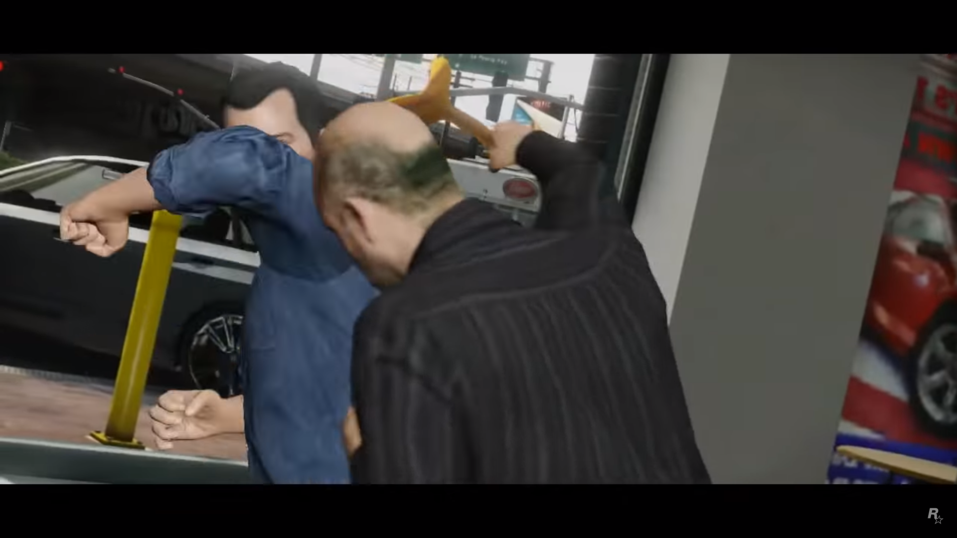 At 1:05, A Police Car has the registration number OCT 25 on its front. This is a possible easter egg on the date of the announcement of the trailer. Before the Spring 2013 release announcement was made, many people believed it to be an easter egg for a release date of the game, as all GTA games (except GTA IV because of delay, and DLCs) have been released in October.