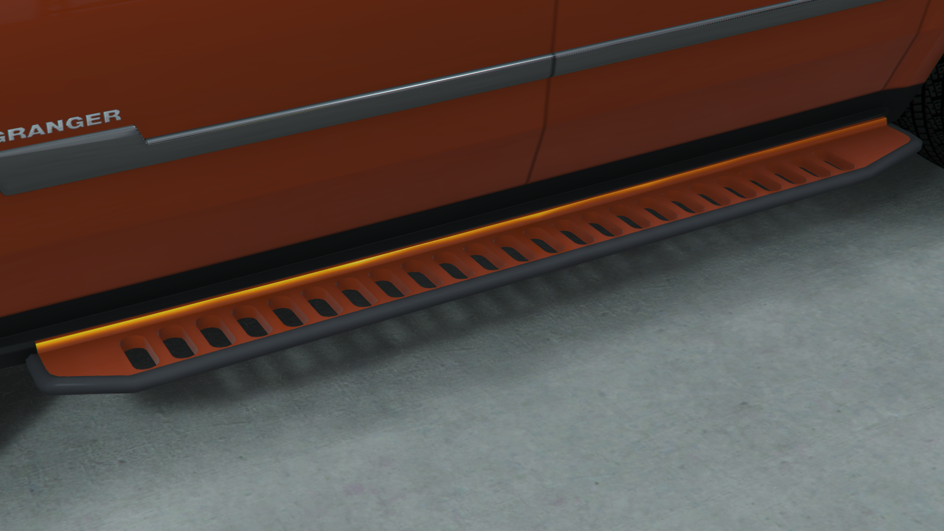 The Granger 3600XL appears as a modern counterpart to the original Granger, a 4-door, full-size SUV. It is considerably larger than its previous iteration and sports a higher trim level by default, complete with chrome plating and trims on and around the bodywork. Like the Granger, it features side platforms by default, allowing up to 4 players to stand on and ride, holding onto the roof bars.