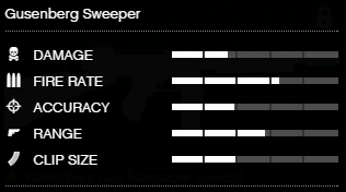 In conclusion, the Gusenberg Sweeper should be treated as a submachine gun more than a light machine gun. It is ineffective at long range, and its low ammo capacity makes it impractical to use, but this can be disregarded if not fired fully automatic. However, at medium and close ranges, it is a very effective weapon, having a high damage per shot, akin to assault rifles, and a high fire rate.