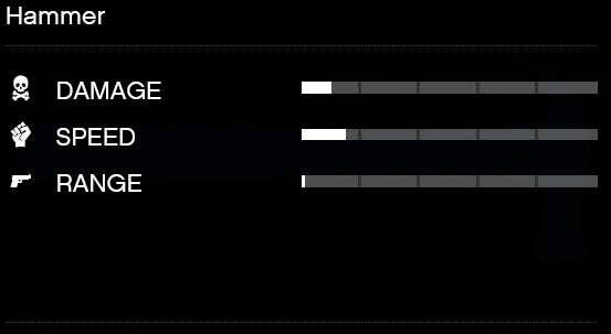 The Hammer has a short range but deals a good amount of damage, causing the person being attacked to collapse.