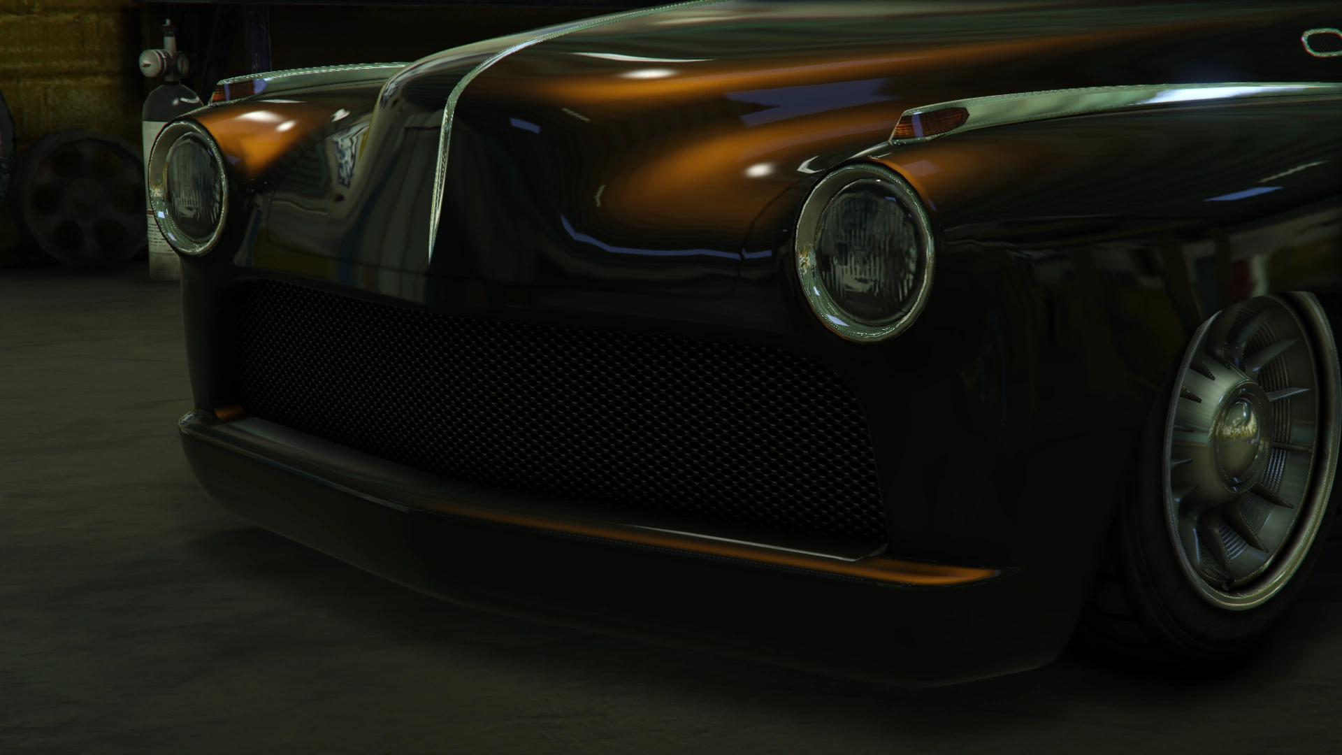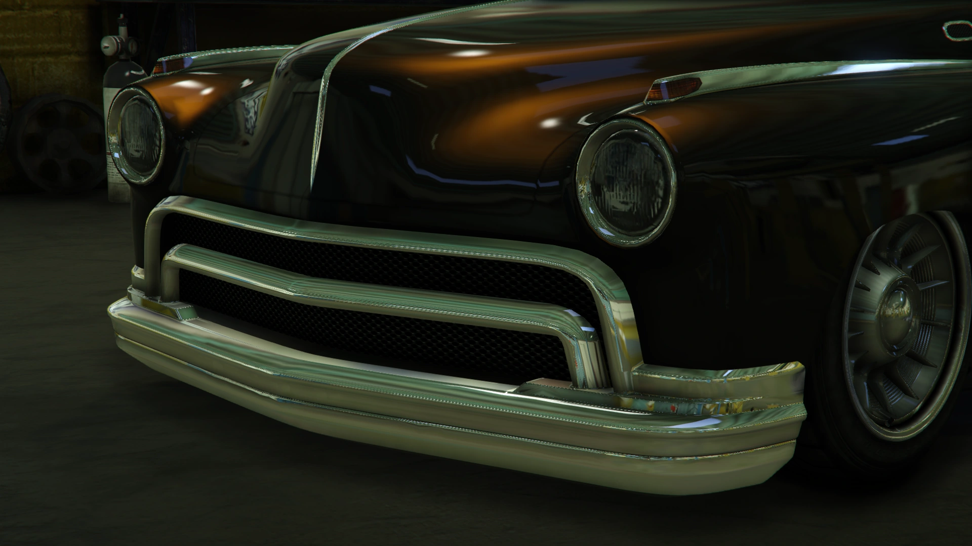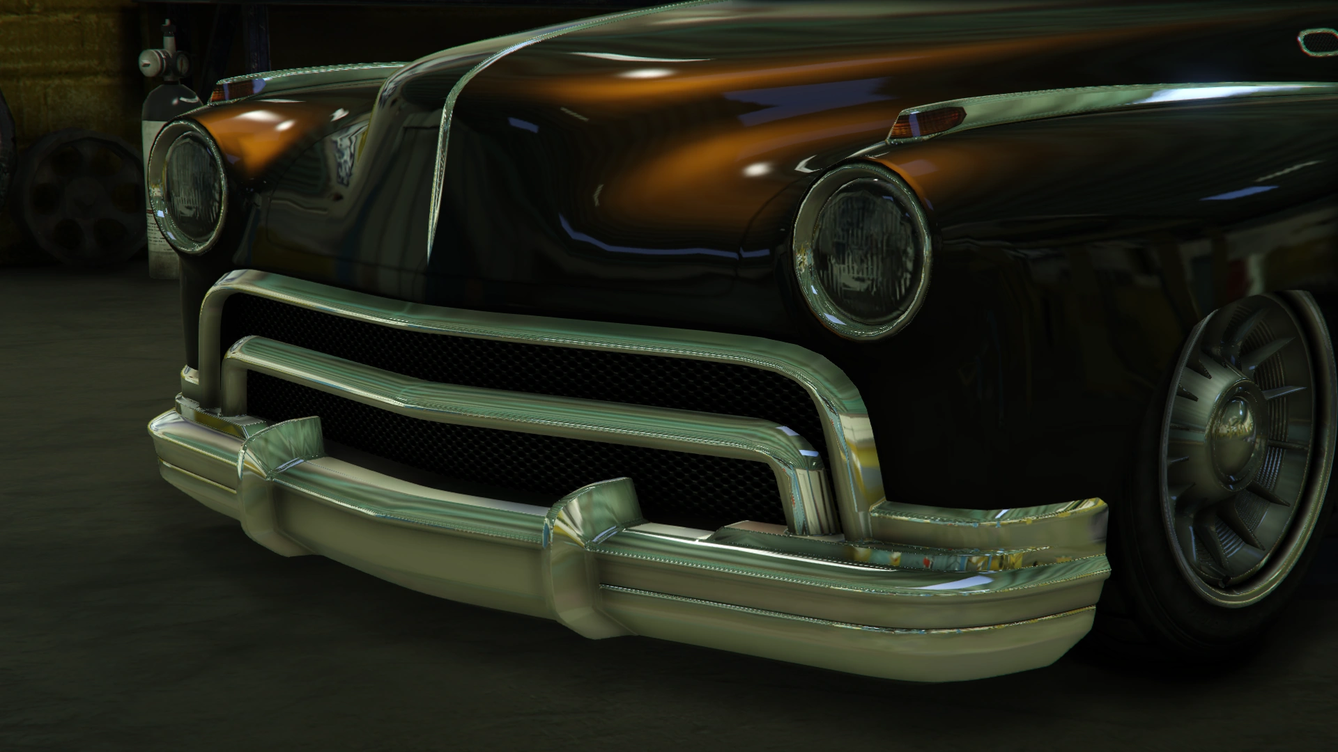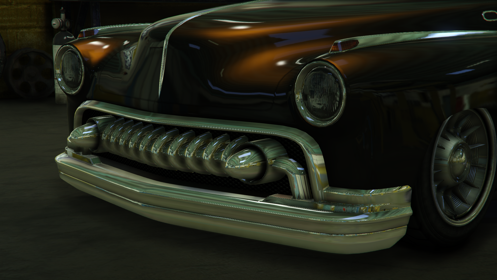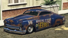 The Hermes returns in Grand Theft Auto Online, this time assuming the design of the third generation Buick Super, while still featuring influences from 1949-1951 Mercury Eight in the overall shape. The front fascia more closely resembles the Hudson Hornet. A classic bumper similar to the Hornet's can also be bought from Los Santos Customs, as well as a livery referencing the Fabulous Hudson Hornet. The rear lights and trunk have mild resemblance to the 1948 Cadillac "Cadzilla". If the rear bumper is removed, it also seems to loosely resemble the Holden Efijy.