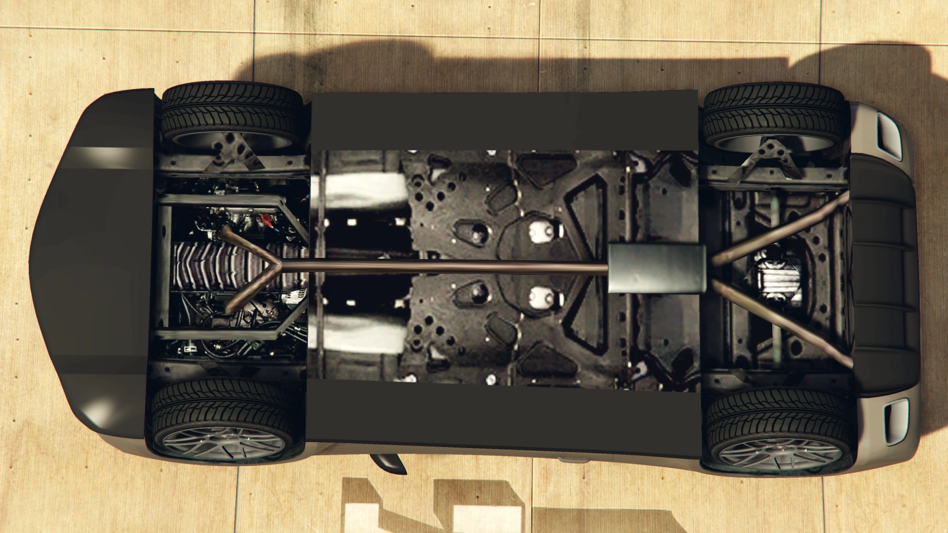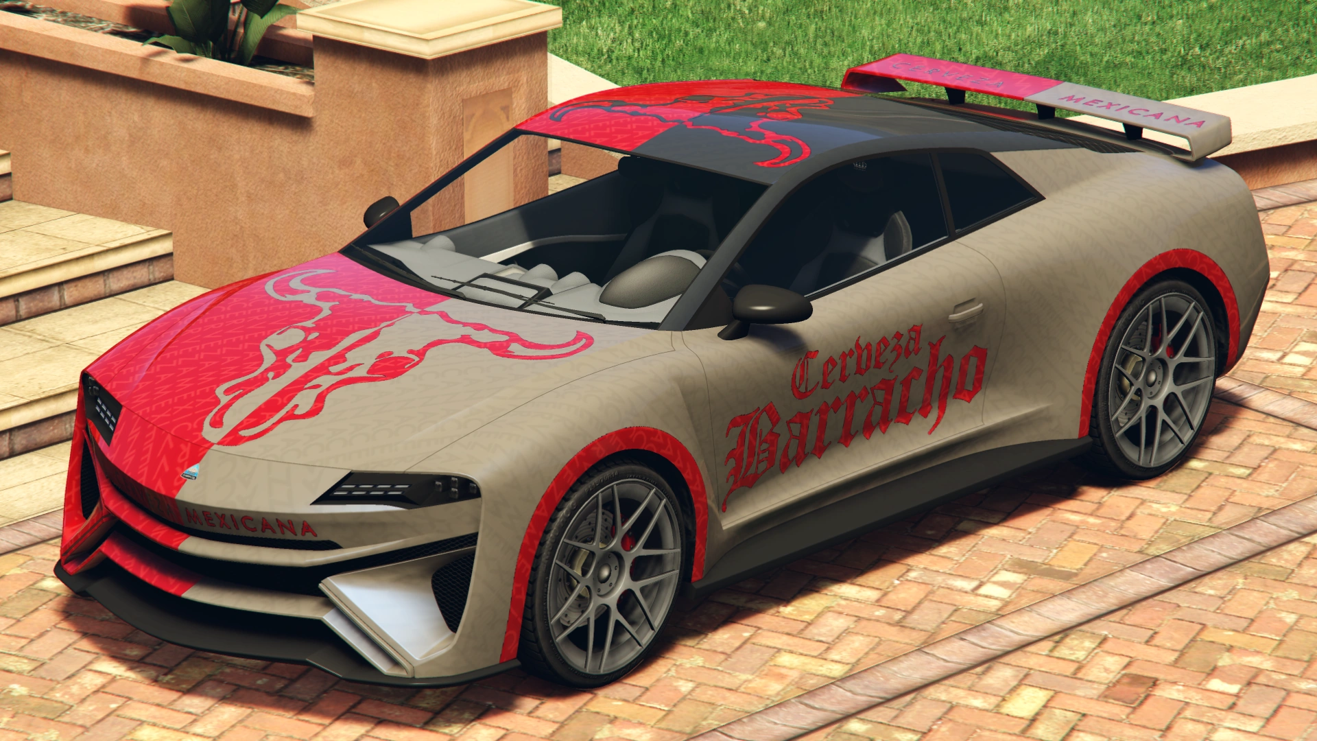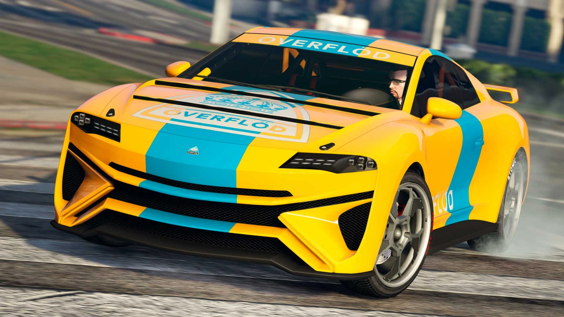 - It came with the "Overflod Stripes" livery and no rear spoiler. This was the only way to legitimately get the vehicle with no spoiler, as the option to remove the stock spoiler is not an available modification, even though its image on the Lucky Wheel advertisement is also lacking the spoiler.