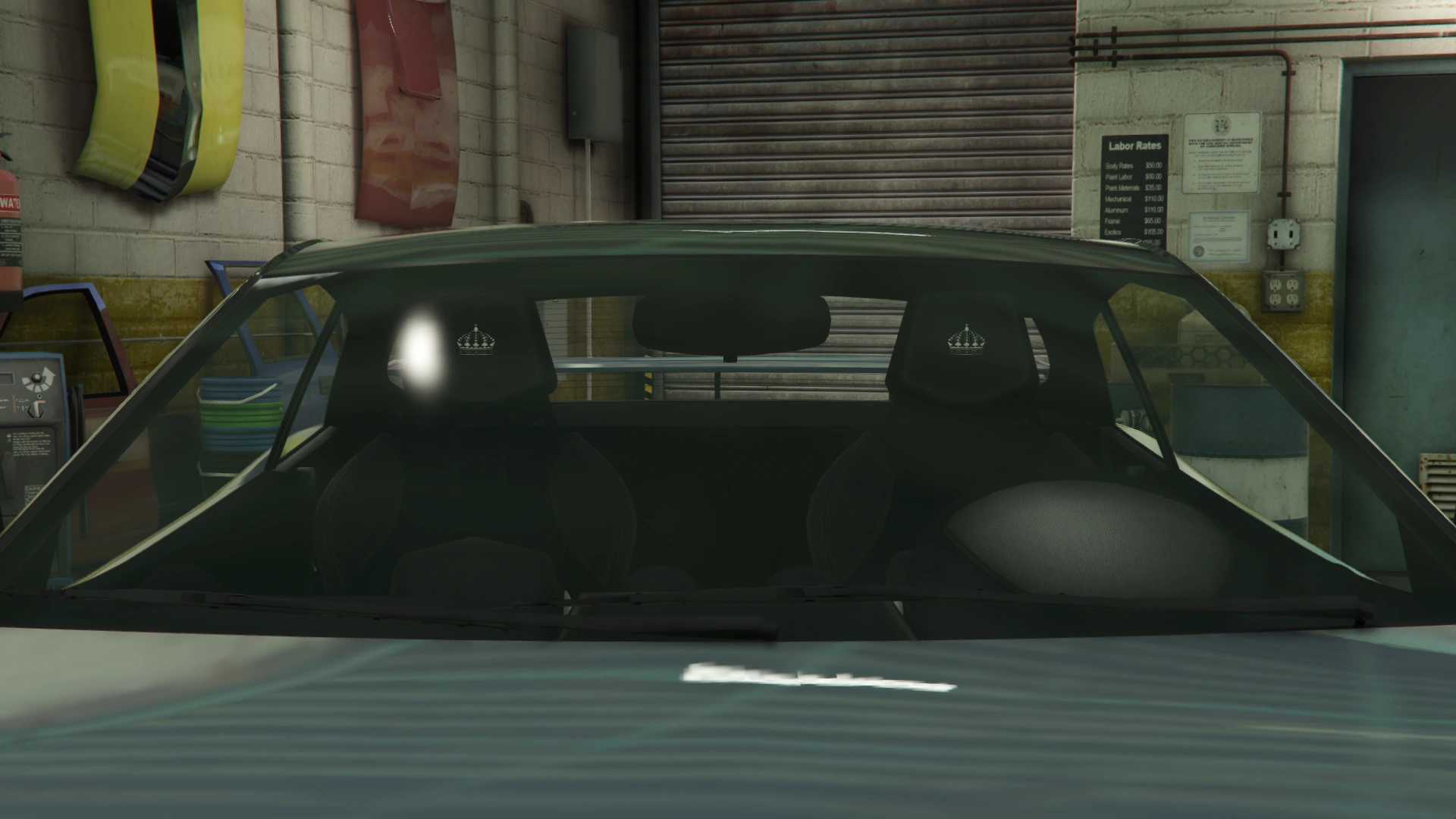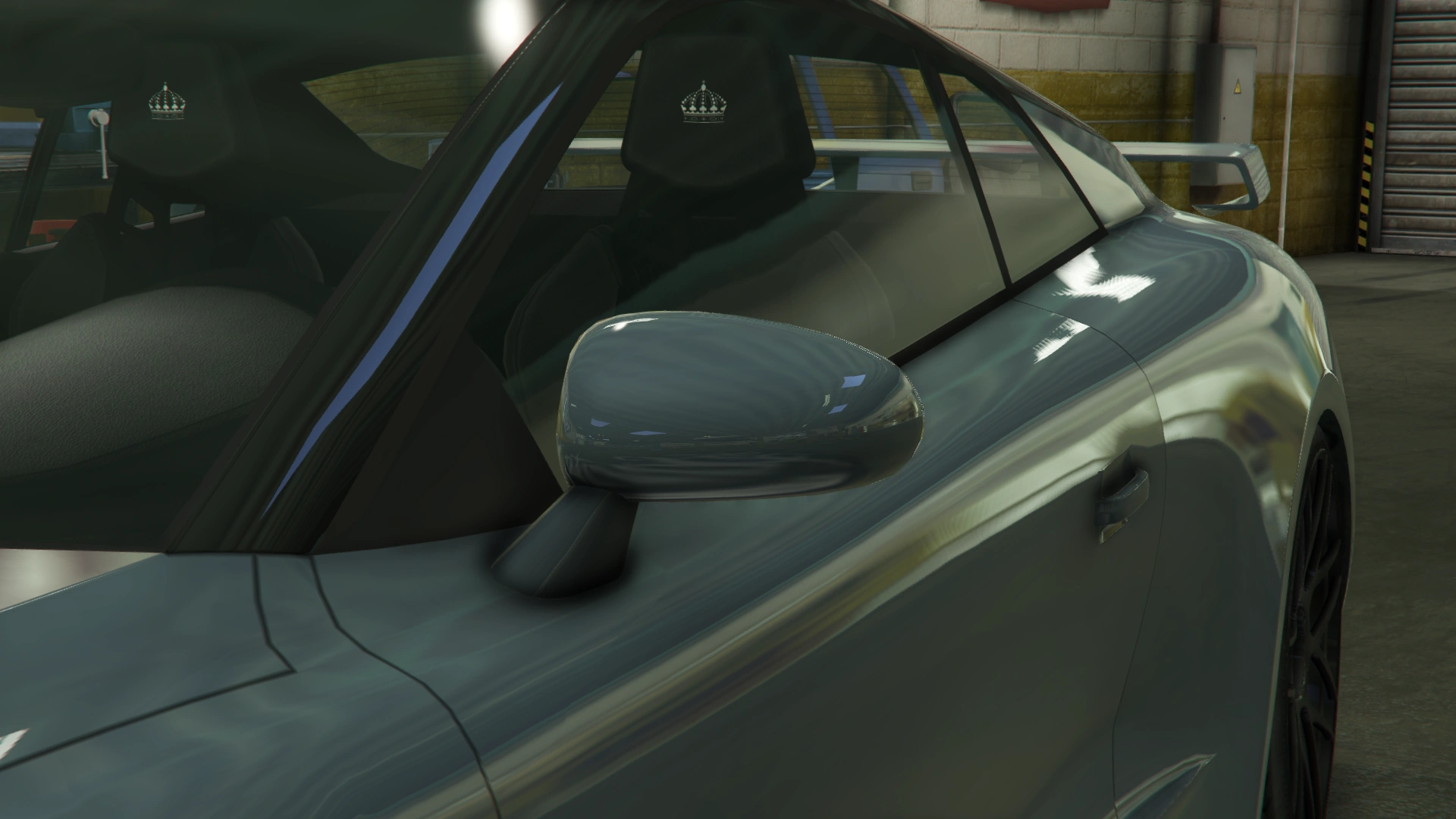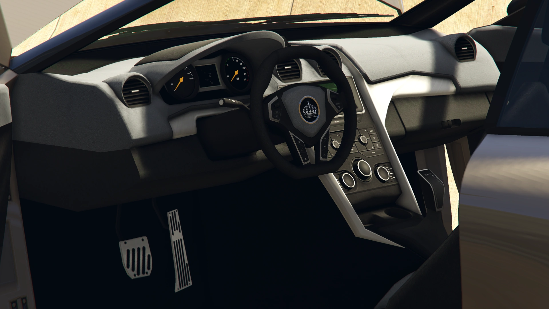 The interior of the car is the same one from cars like the Nero, the Nero Custom and the XA-21, but uses the dial set from the Raiden (a combination also seen on the Neon). The crown emblem of the manufacturer can be seen on the horn cap and on the headrests.