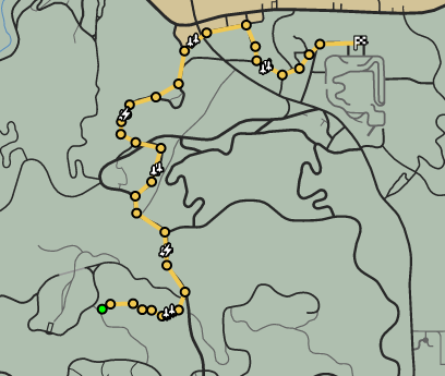Players must race from Galileo Observatory down the Vinewood Hills through the Great Chaparral and Harmony to the Redwood Lights Track.