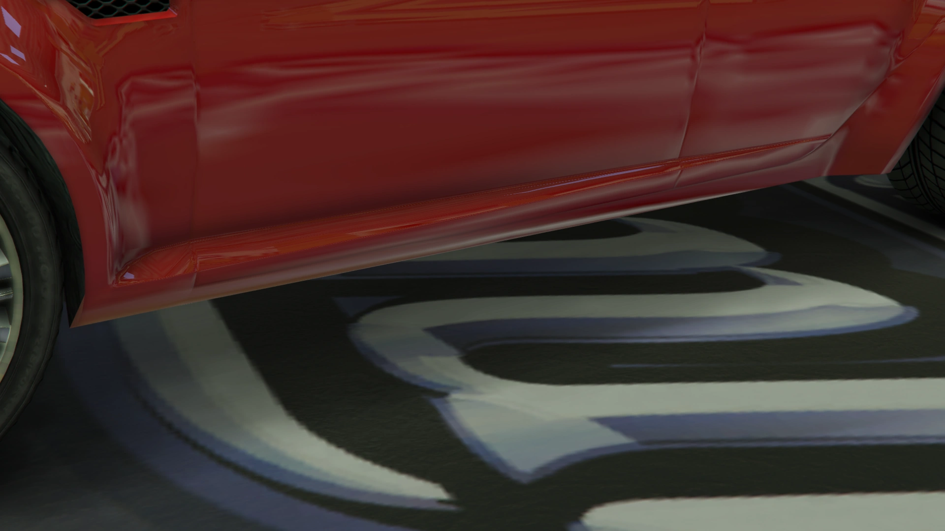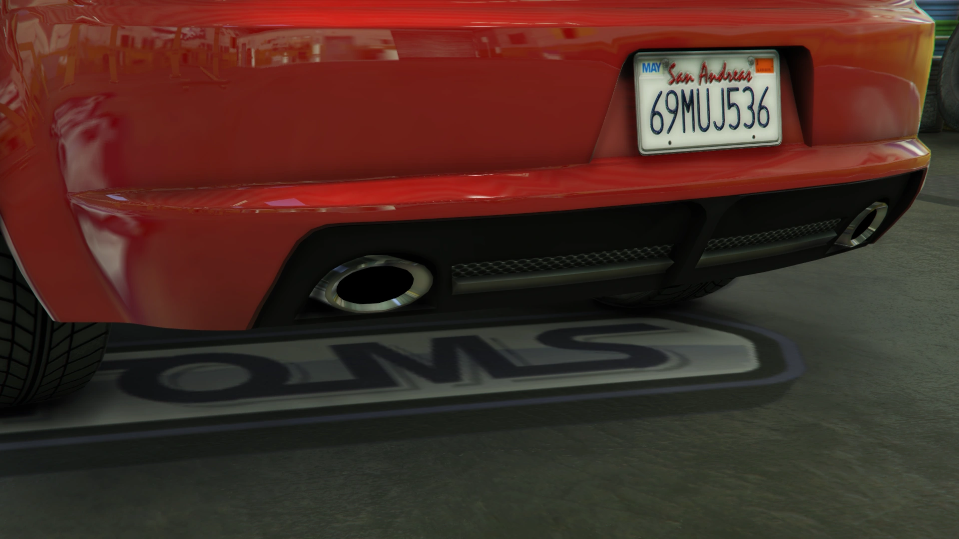 The car is only painted in a single colour, which also affects the interior stitching. The stock wheels share the same rim design as the "Extravagano" SUV wheels also found in Los Santos Customs, but there is an extra circular part behind the spokes, which is unique to this set.