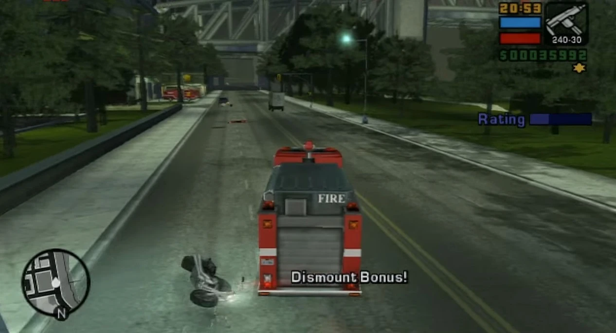 Toni again drops by the cathedral and is greeted by Ned Burner, who is posing as the local reverend. He tells Toni that the motorists of Liberty City pollute the air with 'the Devil's bum gas' and that he wants Toni to show them the error of their ways. Toni drives to the Fire Station in Belleville Park, steals a Firetruck and begins to cause havoc by attacking the motorists and pedestrians. After causing a certain amount of havoc, Toni destroys the Firetruck. A radio report then airs about the havoc on Staunton Island.