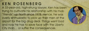 - According to artwork, Ken Rosenberg originally wore the same soiree suit as he does in the game, but wore a yellow shirt underneath.
