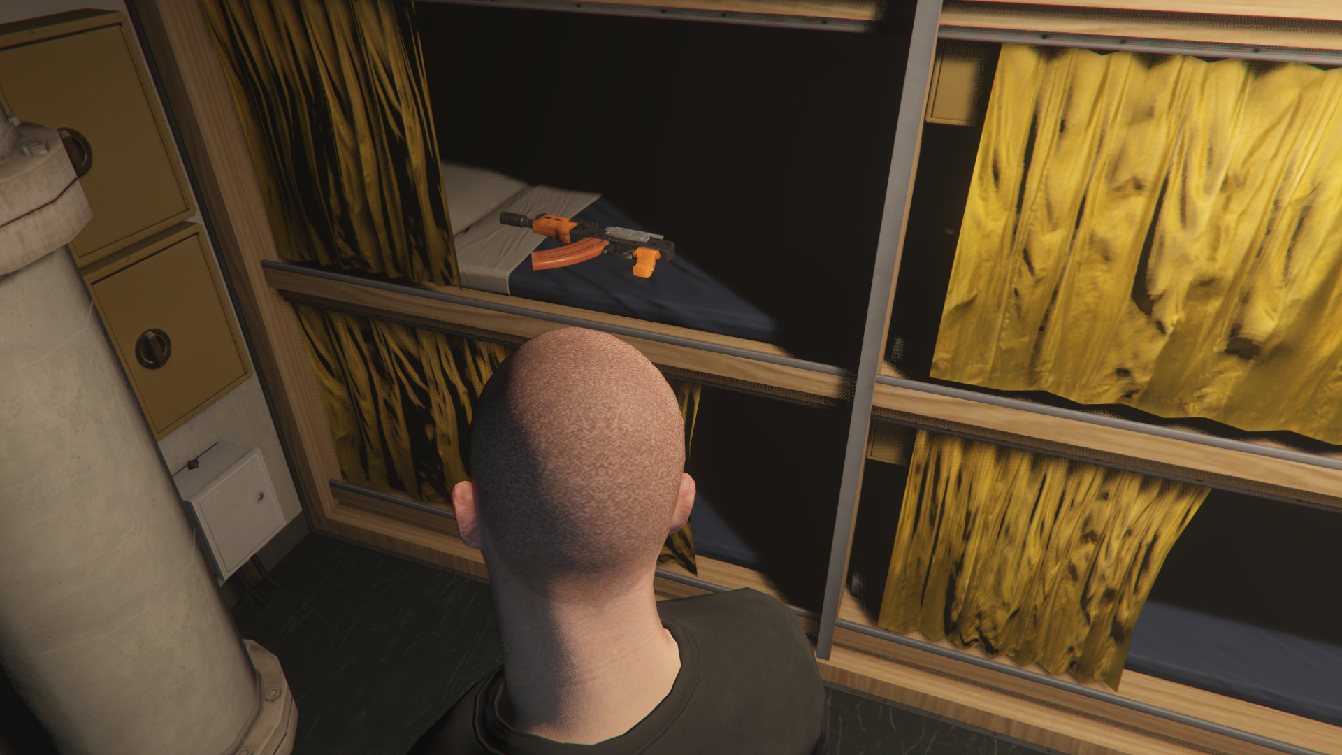 - Rarely, an NPC might appear halfway clipped into the Kosatka's sail. This NPC is invincible and fully passive but will still react to being threatened by a weapon and gunfire.