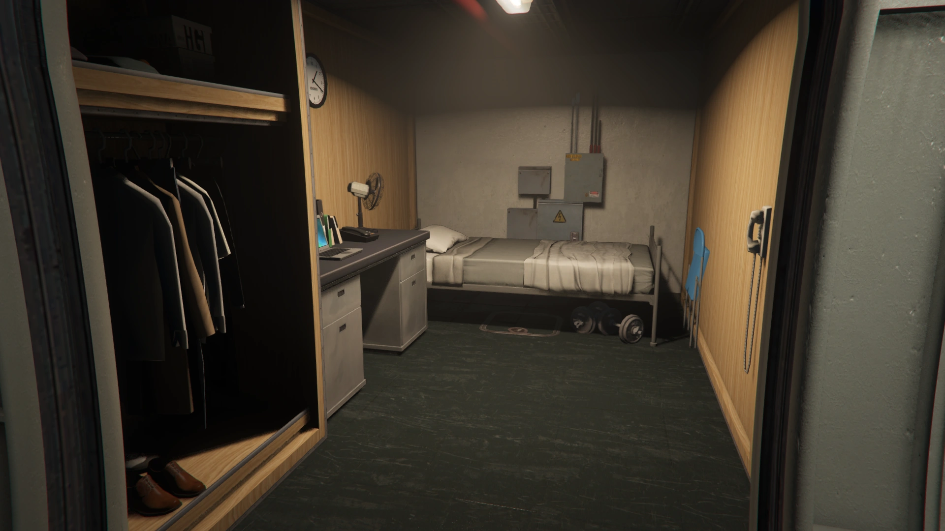 - If the player purchases the Weapons Workshop upgrade, a bench and wall mount containing various tools and Mark 2 weapons will replace the jail cell, allowing the owner to customize their Mark 2 weapons and resupply specialized ammunition.
