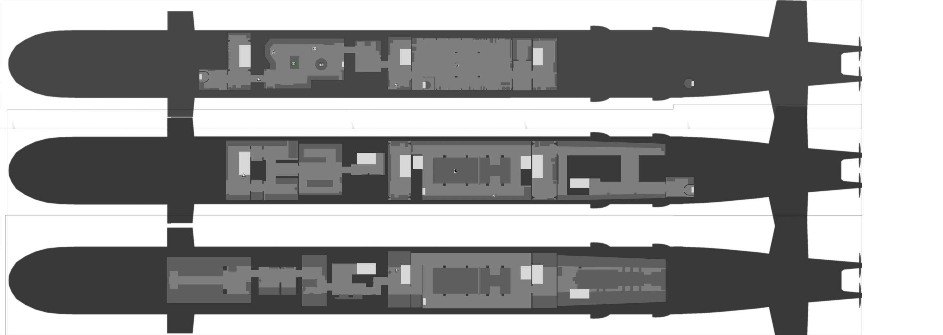 Several stairs provide connection between the levels, as well as ladders that allow players to exit the Kosatka through the forward or aft hatches or via the sail at the bridge.