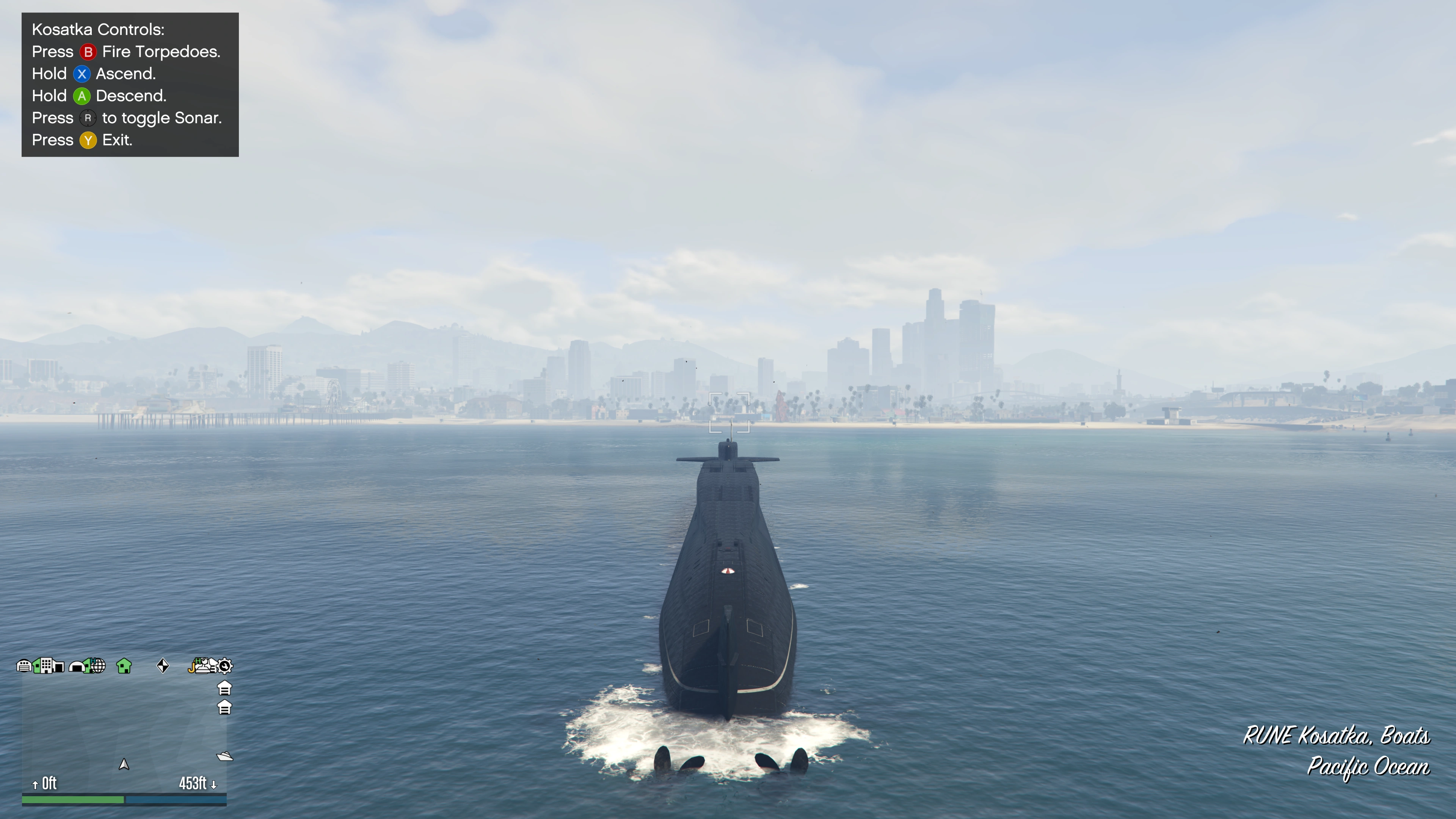 It should be noted that due to its nature as a naval vessel, it can be difficult to even reach the Kosatka, allowing the submarine to keep its distance from the mainland and firmly out of range of threats such as the Homing Launcher and RPG. Only vehicles like the Stromberg and the Toreador can reach the submarine and outmaneuver it, so players have to be aware of such threats.