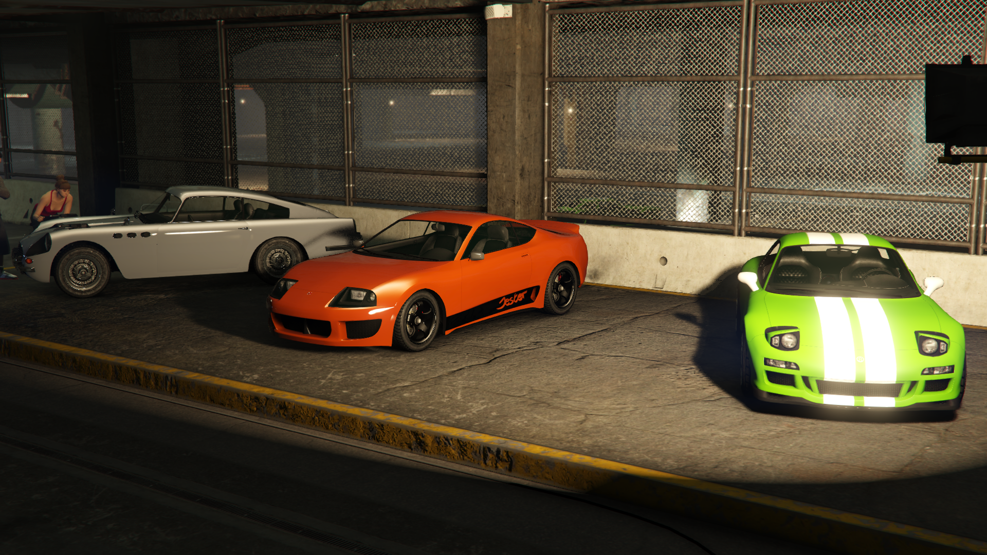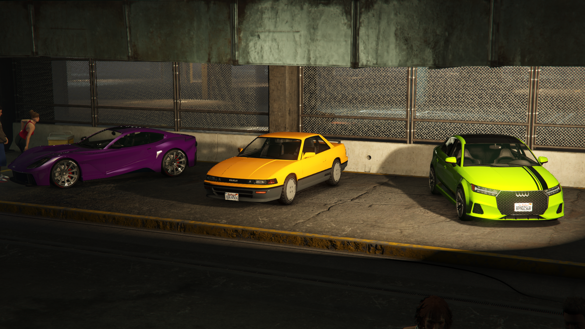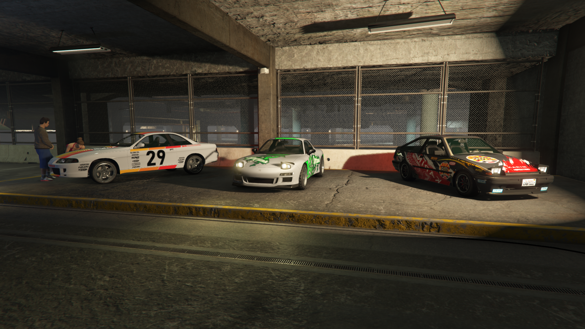 Inside the Meet, along with the previously listed specific character-owned vehicles and generic pre-modified vehicles, there are several specifically modified replicas of vehicles featured in Rockstar Games' Midnight Club series as well as other homages to film and media, using models and liveries available prior to the Los Santos Tuners update. The Tuners update included many updated reference vehicle and livery combinations that are not used.