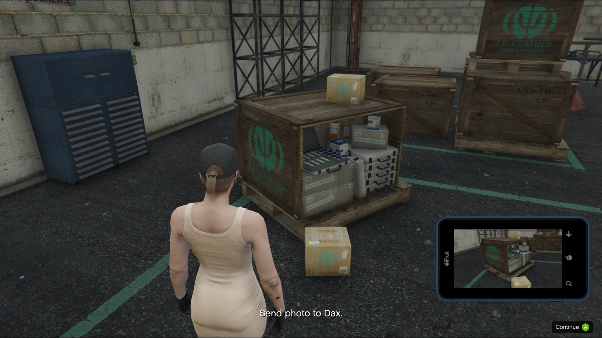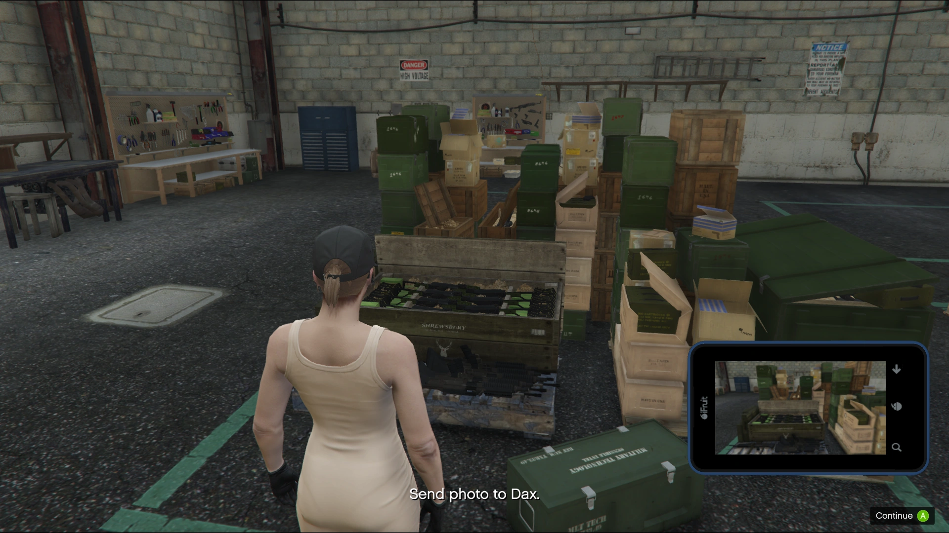 The player photographs the clues with Snapmatic and sends them back to Dax. After photographing a third clue, Dax will warn the player to expect company and goons will start arriving, although they will not be immediately hostile and will have cones of vision and can be avoided. They can be dispatched quietly to avoid raising the alarm, otherwise if they are alerted, waves of goons will start arriving to attack, including using Caracaras in Hard Mode.