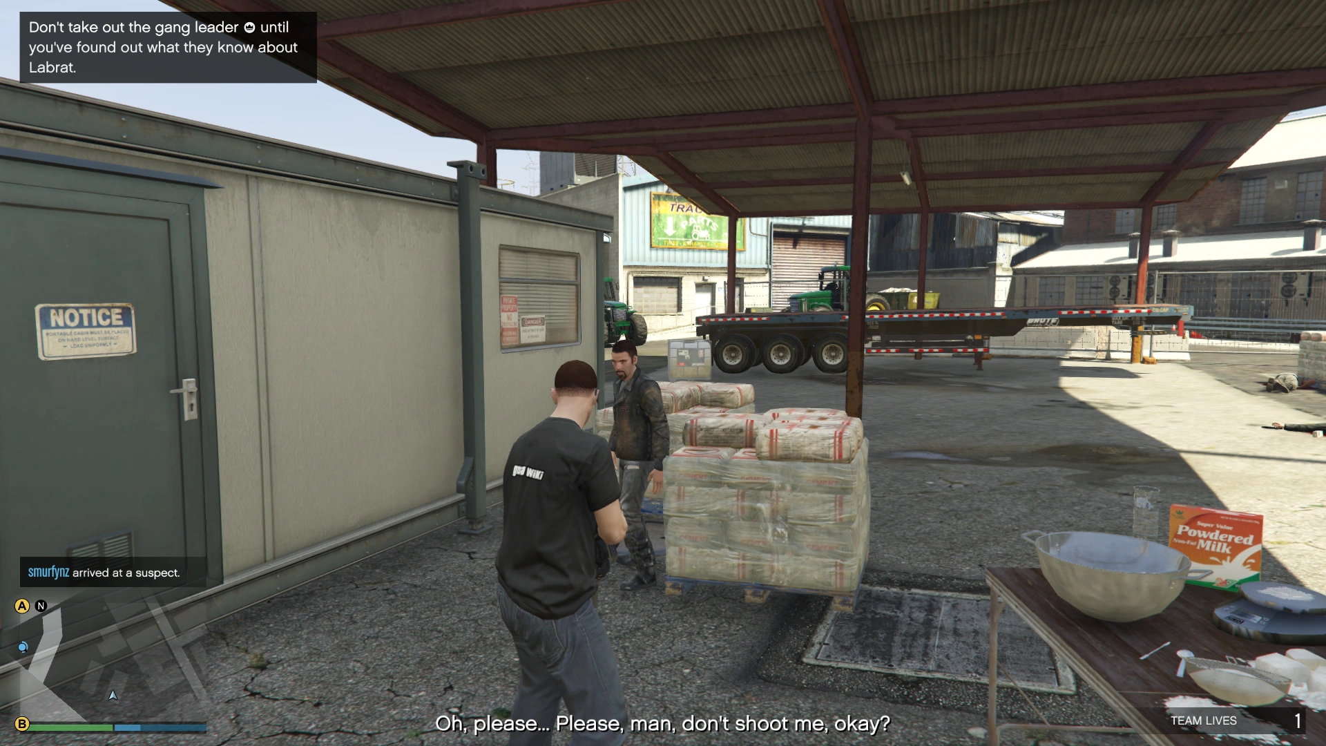 Regrouping at The Freakshop after the kidnapping of Labrat, Dax orders the GTA Online Protagonist to try to find some clues as to Labrat's whereabouts, assuming the attack was revenge by The Lost MC or the Hippies for the earlier events of First Dose.